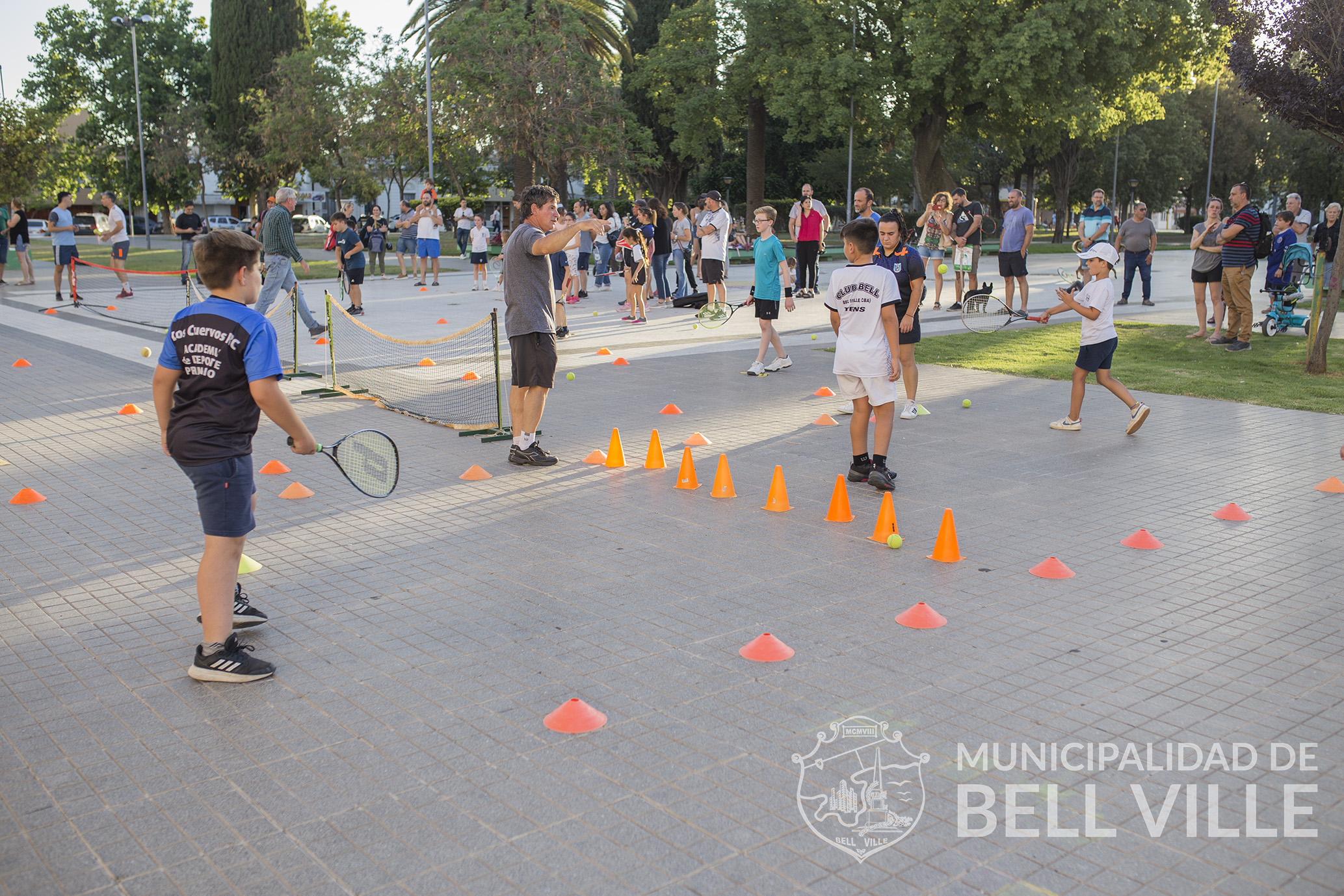En lo referido estrictamente a la actividad anunciada, sobresalió el entusiasmo de los alumnos de las tres escuelas donde se enseña este deporte, siendo precisamente los clubes Central, Bell y Los Cuervos, las entidades que apoyaron la iniciativa y se sumaron con sus responsables a la organización del evento, quienes diagramaron un circuito de iniciación de mini tenis con nueve estaciones que estimularon la coordinación corporal, incluyeron juegos basados en otros deportes para mejorar habilidades básicas y buscaron enriquecer destrezas, aprendiendo a controlar una raqueta y a impactar una pelota.
