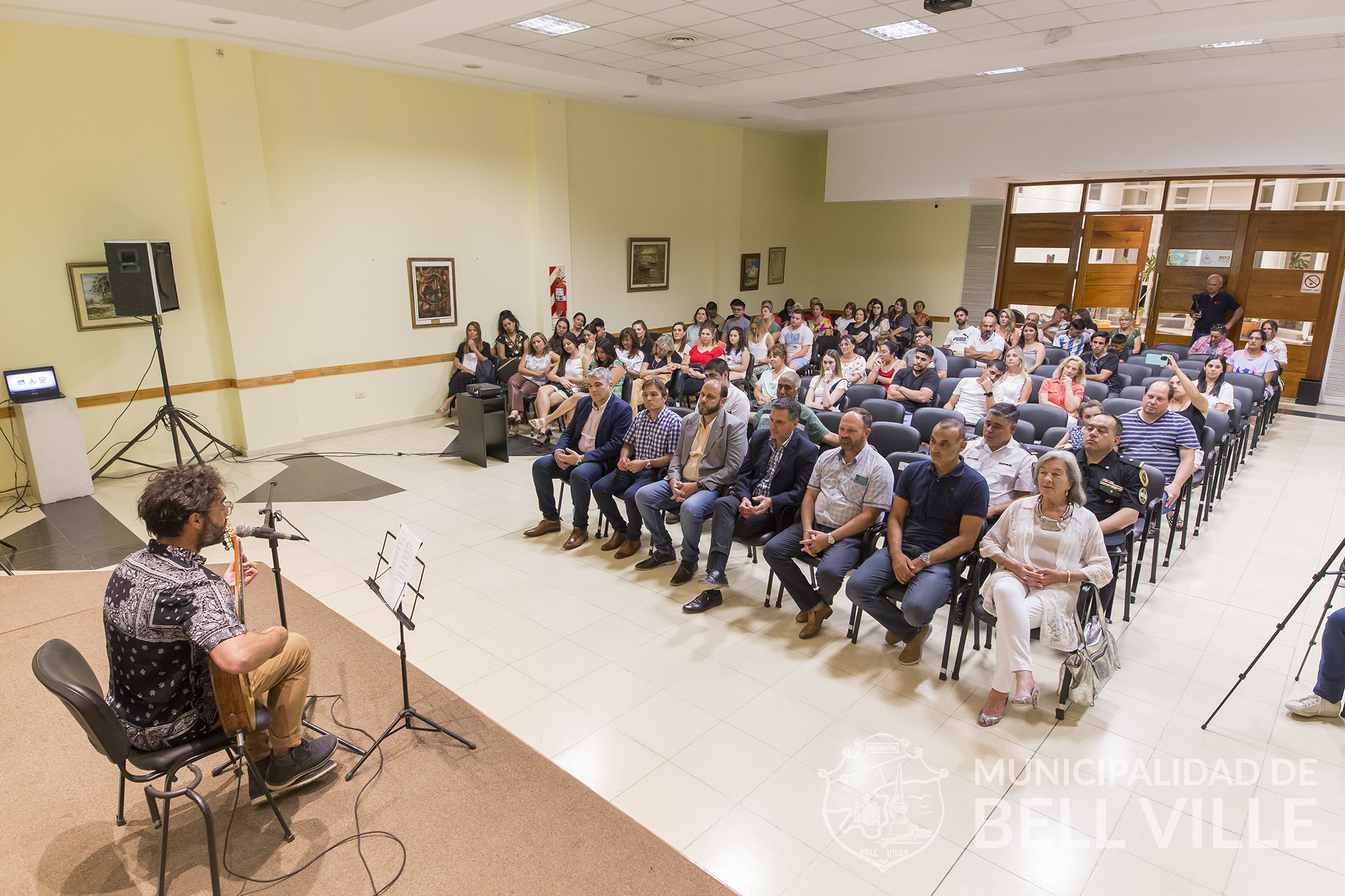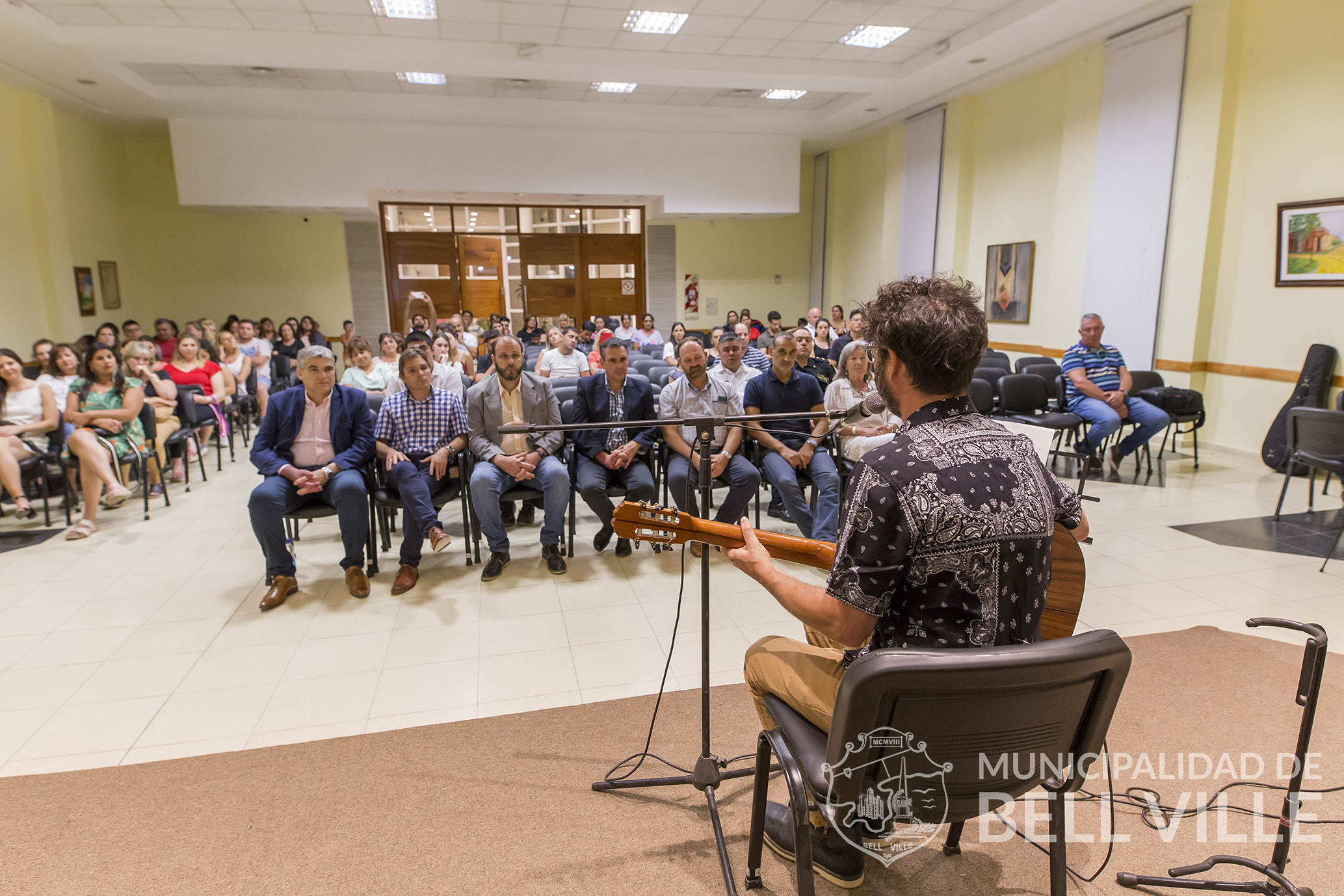 En el auditorio del Consejo Profesional de Ciencias Económicas se cumplió el acto, que contó con la intervención del cantautor Ezequiel González, quien, en plena pandemia creó un tema alentando el trabajo de un sinnúmero de vecinos, cuando crecían los contagios y por ende las preocupaciones en la comunidad.