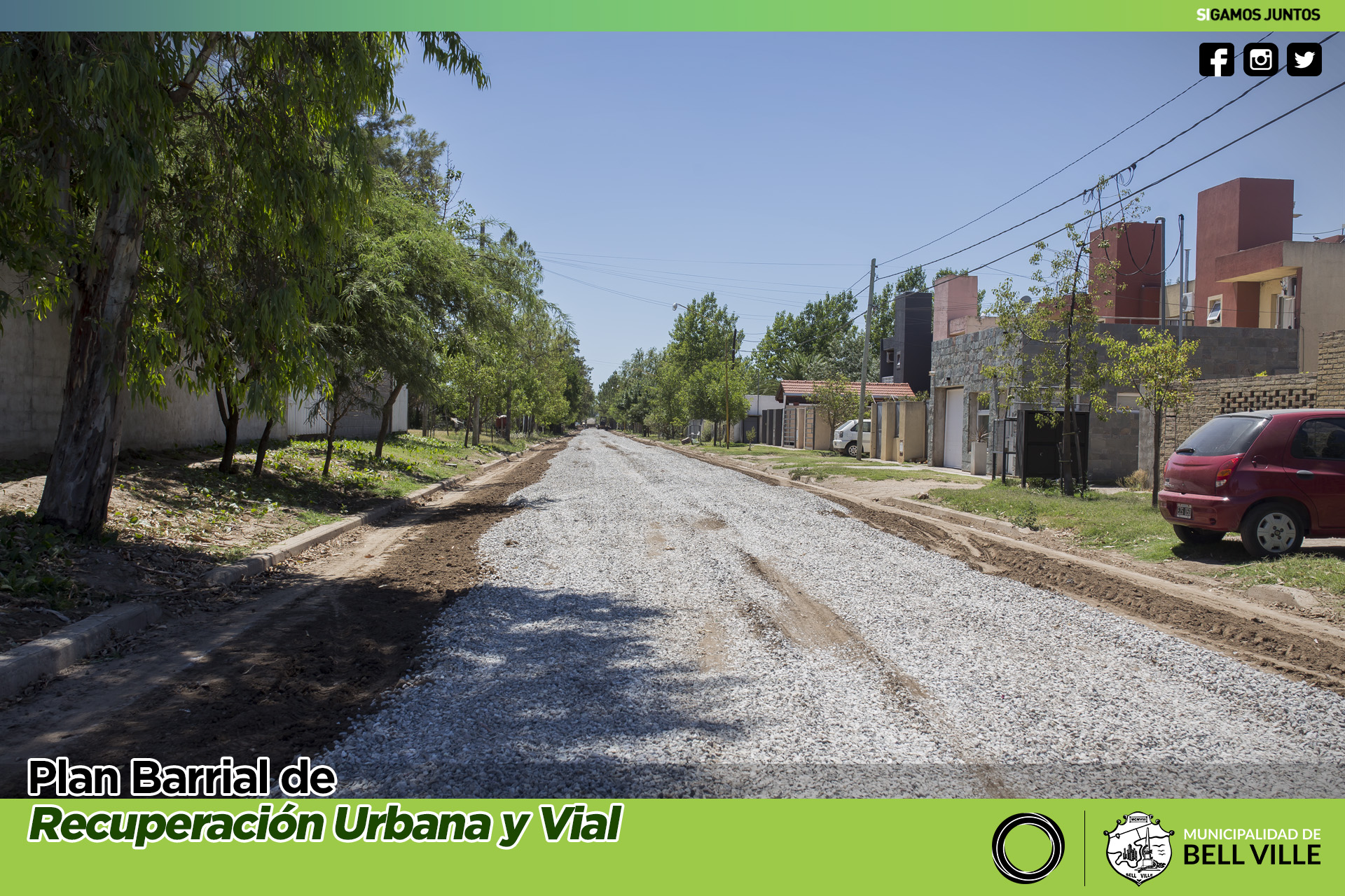 Concluido el cordón cuneta, se incorporaron distintos elementos, entre ellos arena y piedra partida en casi 400 metros de cordón cuneta en calle Berta Britos de Buc, entre Alem y Constitución, como parte del Plan de Recuperación Urbana y Vial.