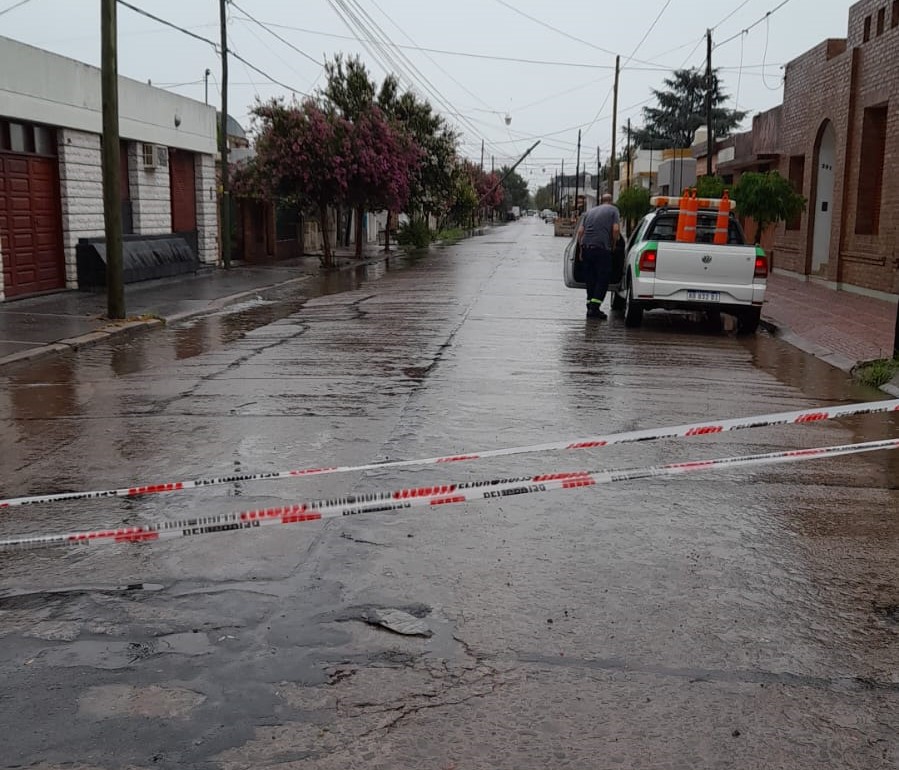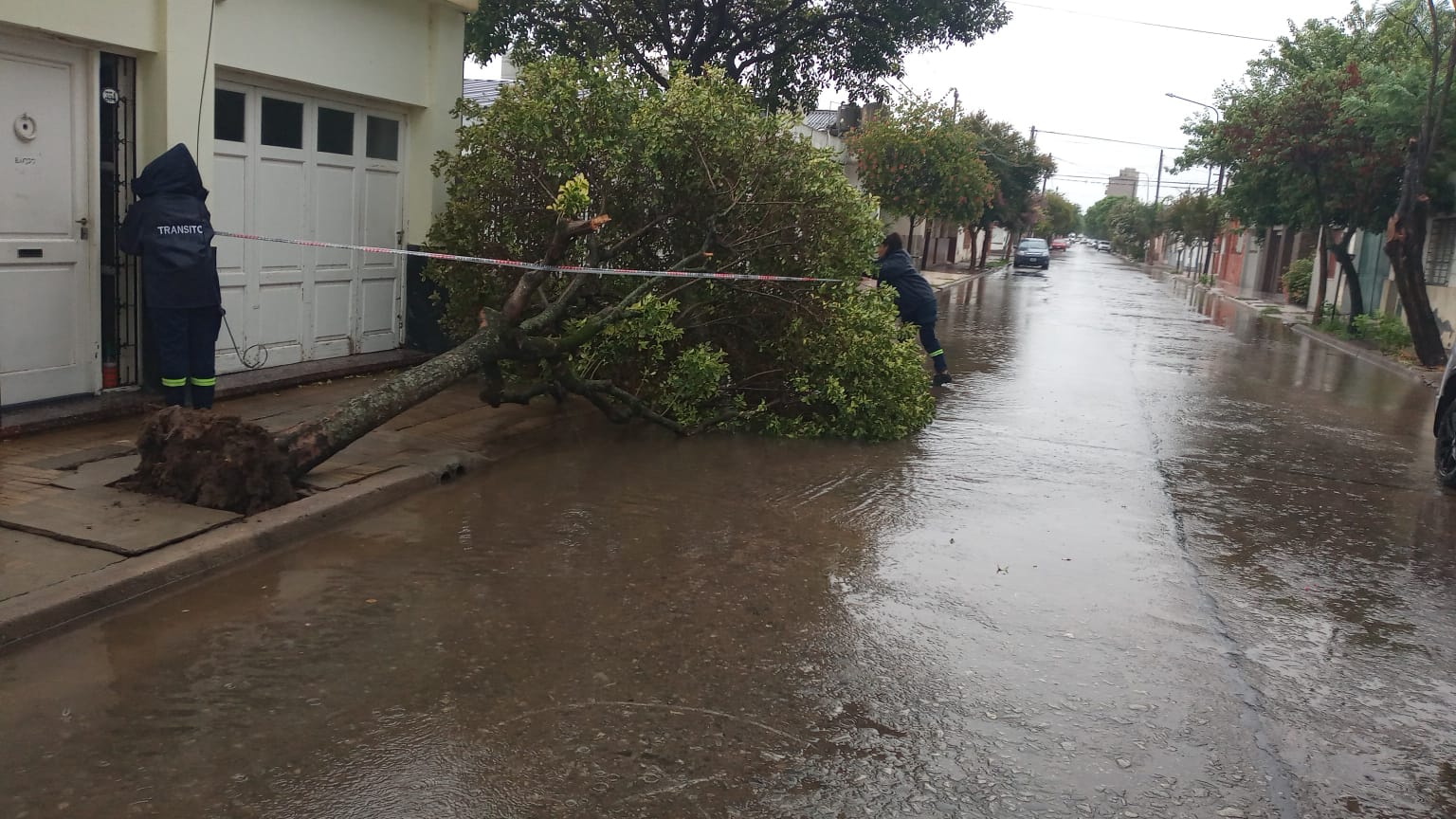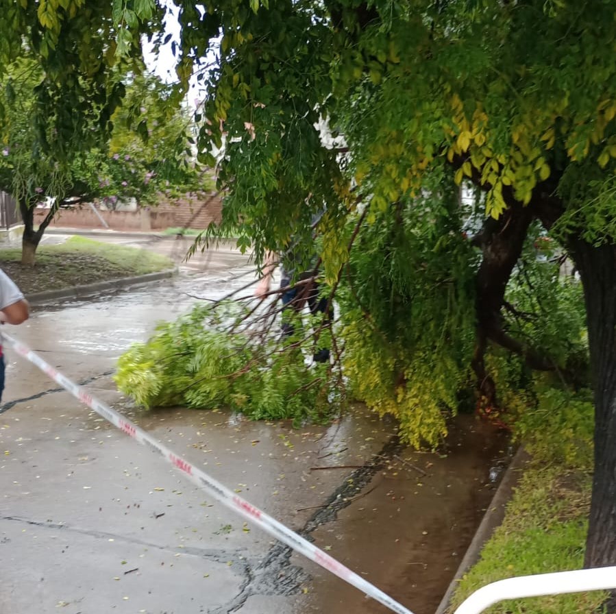 Personal de Bomberos Voluntarios, Municipalidad y Defensa Civil debieron actuar por la caída de algunos árboles, ramas y postes de servicios públicos.