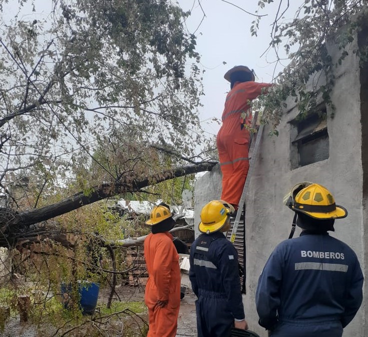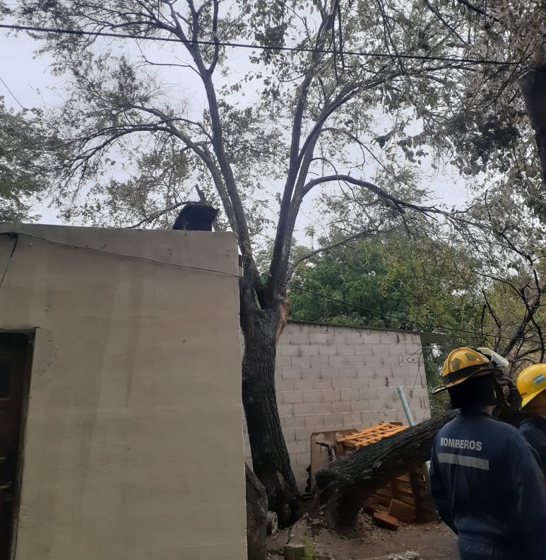 También lo hicieron en Villa Carlitos, donde una rama se depositó sobre una vivienda, lográndose su extracción, sin afectar la estructura edilicia.