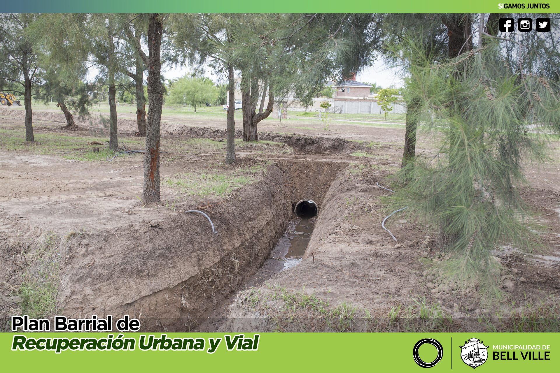 Se realizó el desvío del canal que ocupaba la vereda Sur correspondiente a la Av. Eduardo Angeloz frente al espacio verde.