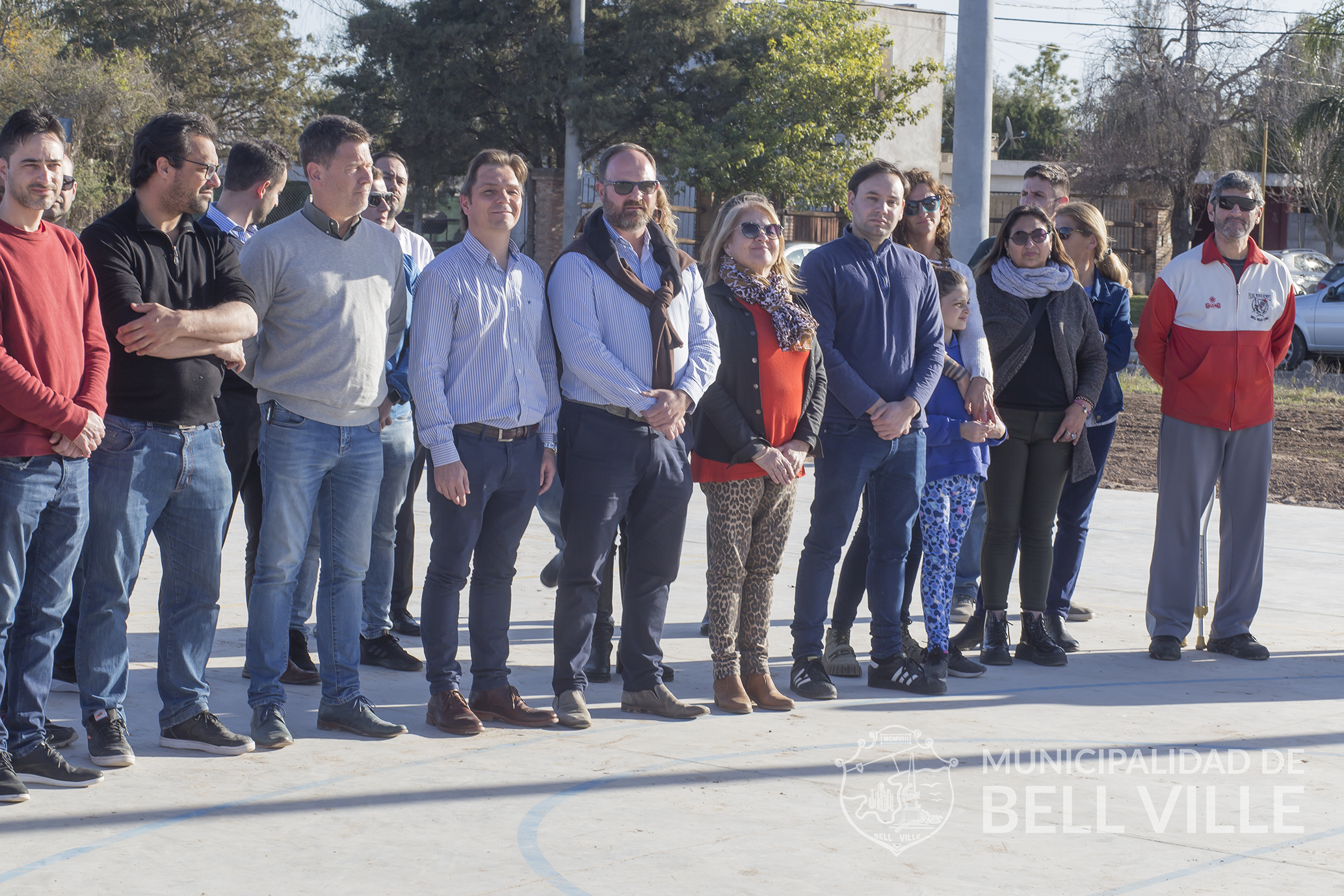 Está conformado con una base de hormigón de 20×30 metros, demarcado para distintas actividades deportivas y con iluminación led para que pueda ser aprovechado en horario nocturno, posibilitando así un encuentro de vecinos de todas las edades.