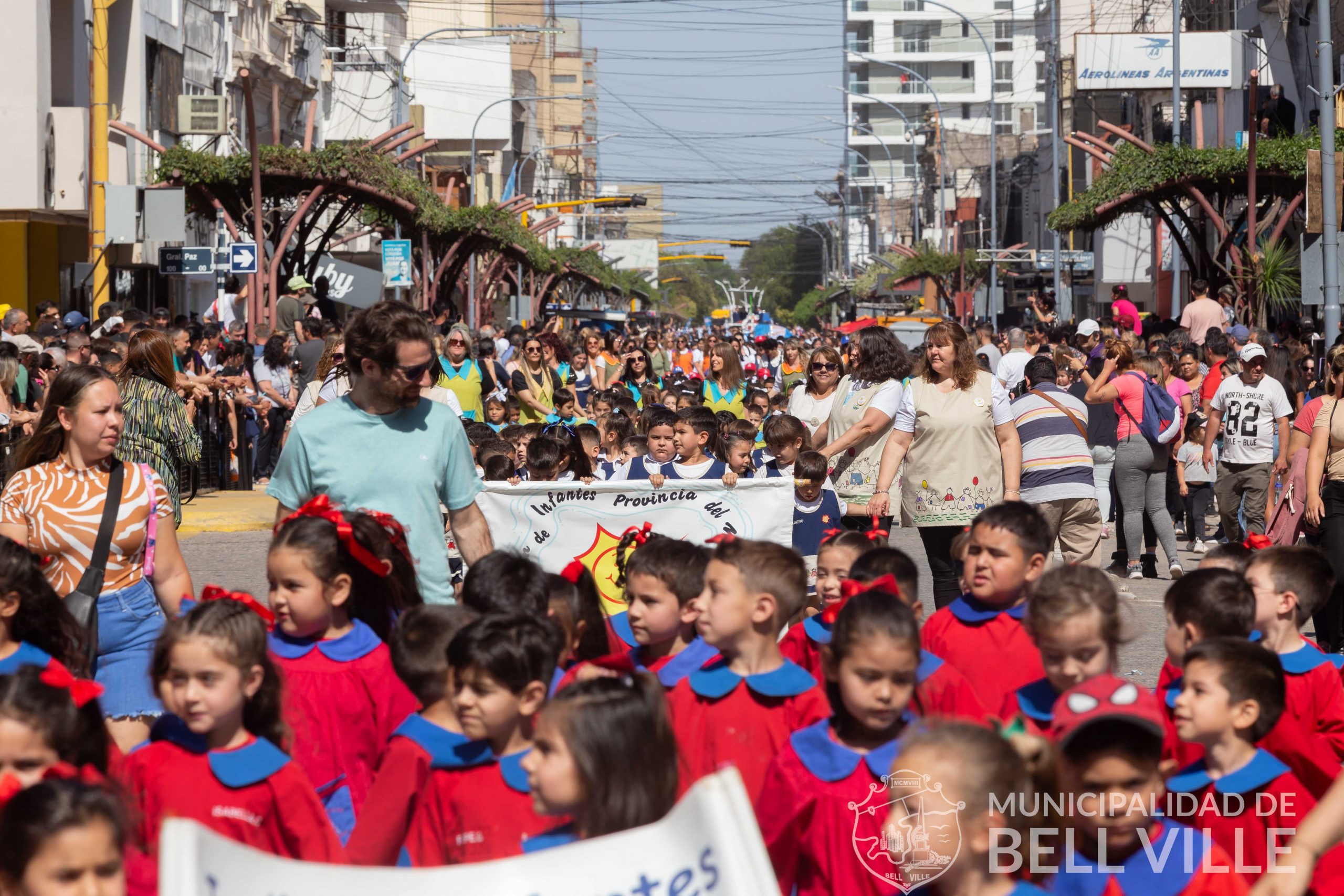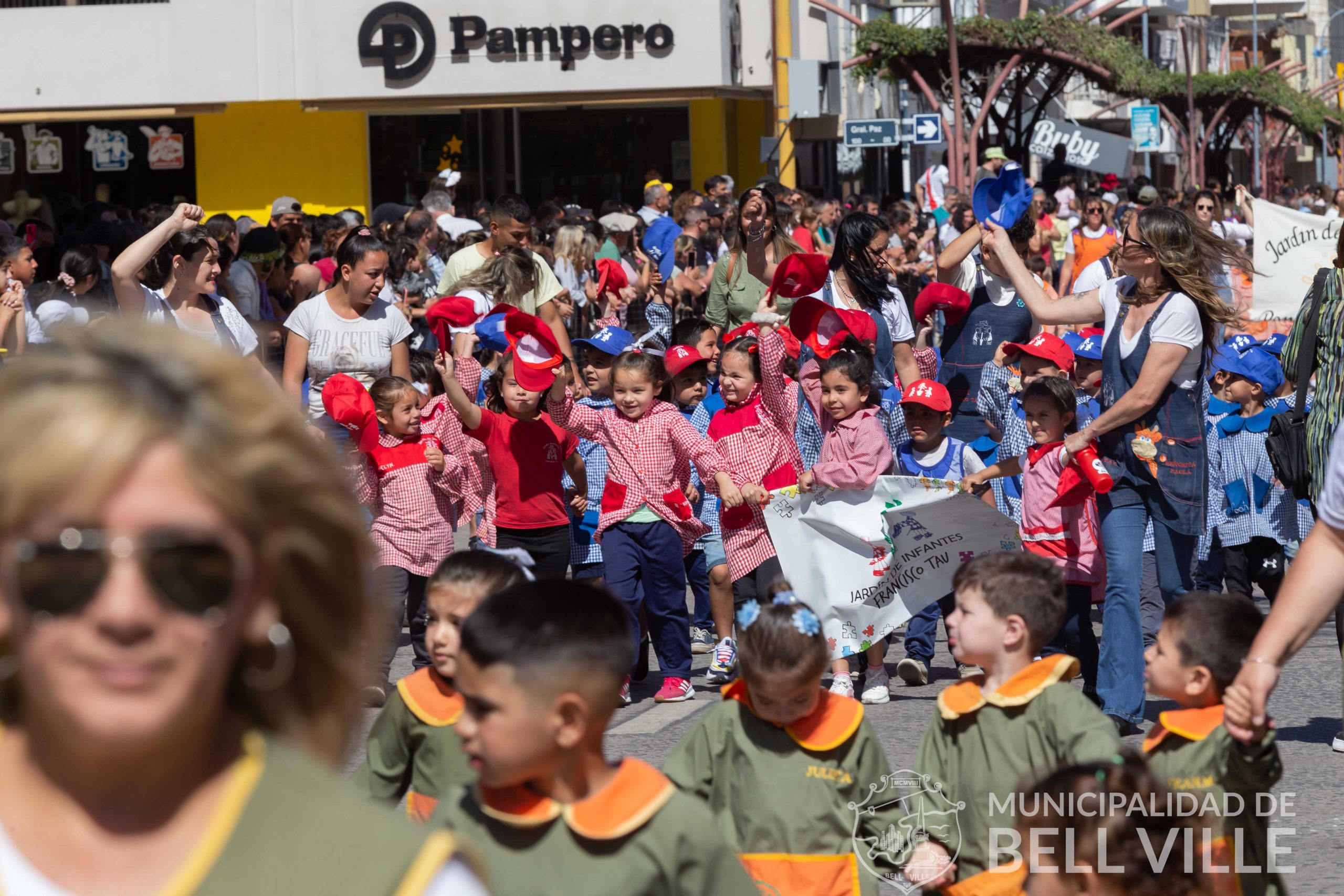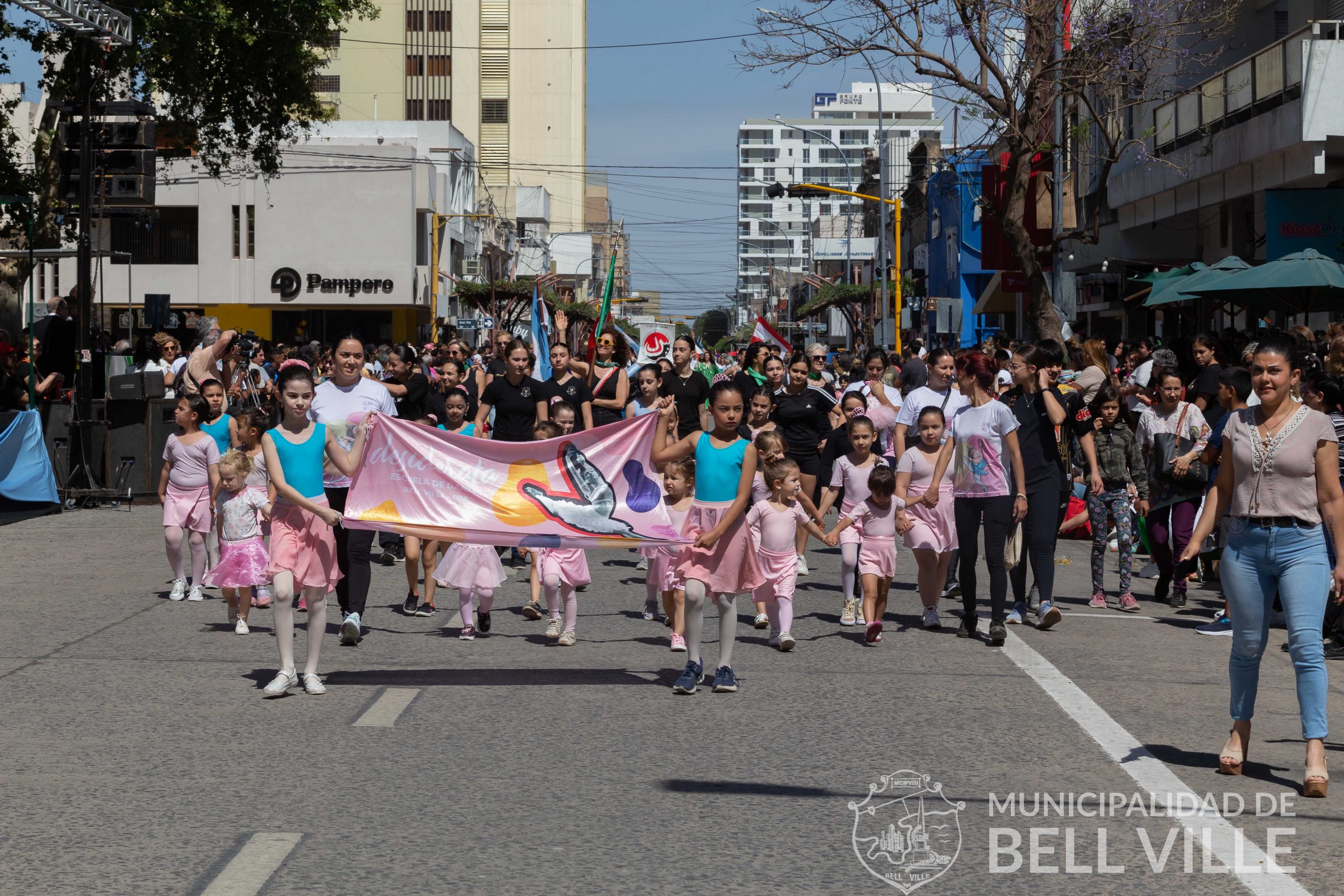 Con gran cantidad de público ubicado en calle Córdoba, se cumplió ayer el tradicional desfile por los 347 años de Bell Ville, destacándose el aplauso espontáneo al paso de los representantes de más de un centenar de instituciones que mostraron con orgullo lo que hacen por la ciudad desde la educación, cultura, deporte, solidaridad, religión, economía y seguridad, entre otros aspectos.