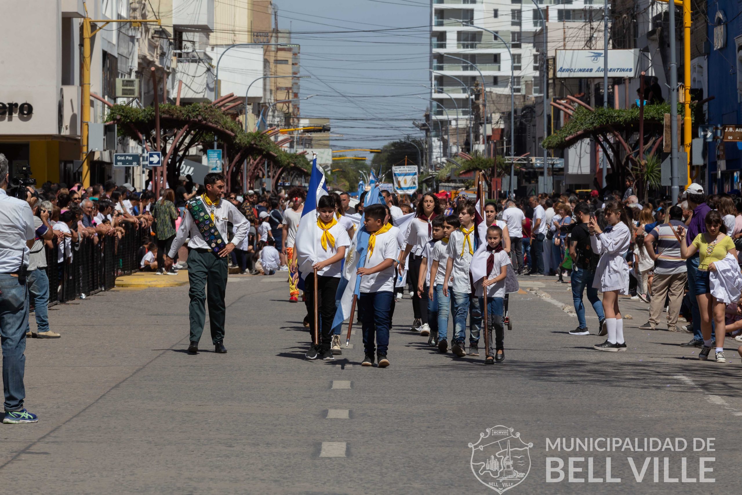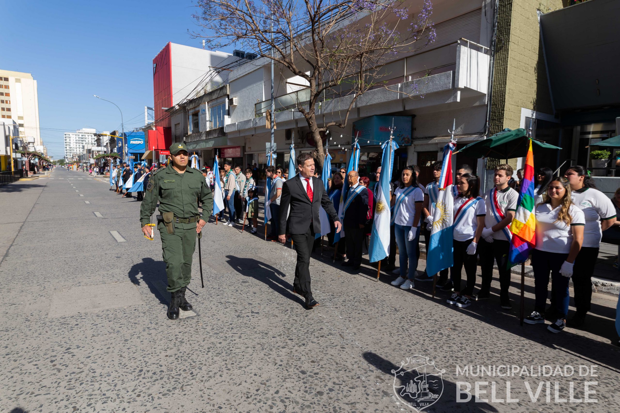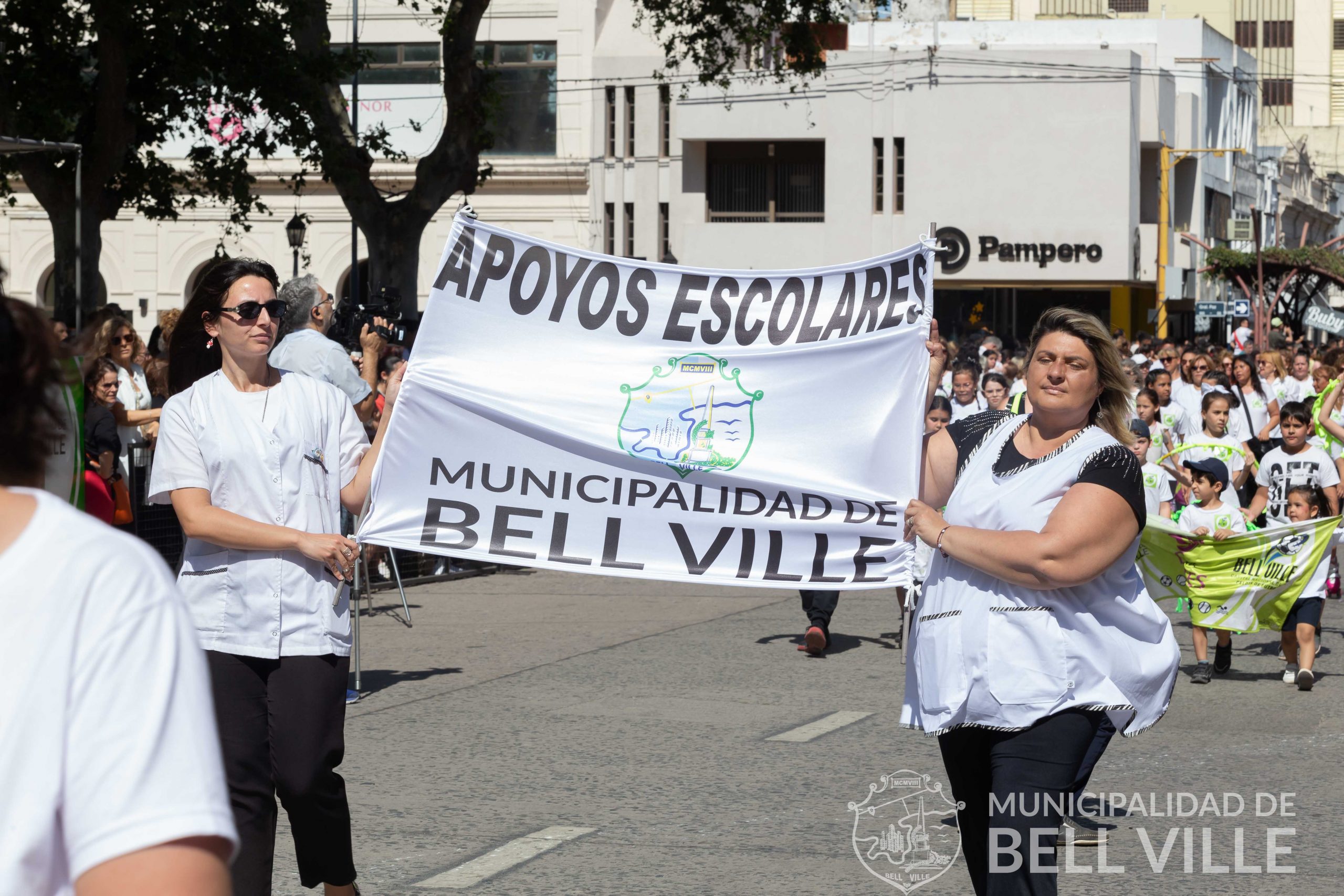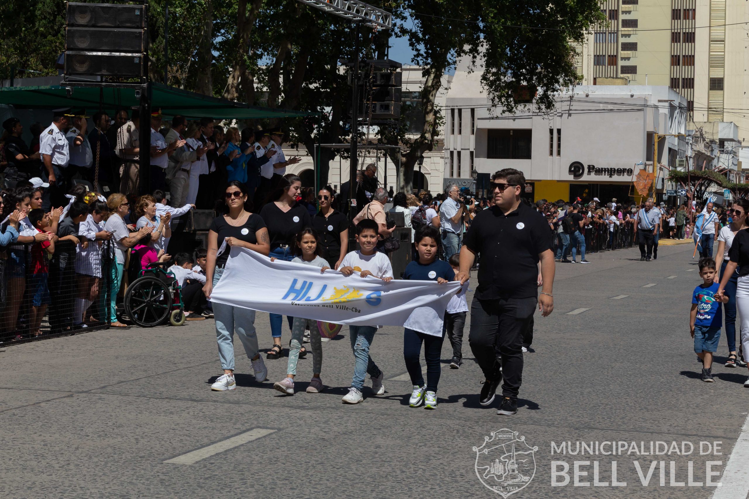 Con gran cantidad de público ubicado en calle Córdoba, se cumplió ayer el tradicional desfile por los 347 años de Bell Ville, destacándose el aplauso espontáneo al paso de los representantes de más de un centenar de instituciones que mostraron con orgullo lo que hacen por la ciudad desde la educación, cultura, deporte, solidaridad, religión, economía y seguridad, entre otros aspectos.