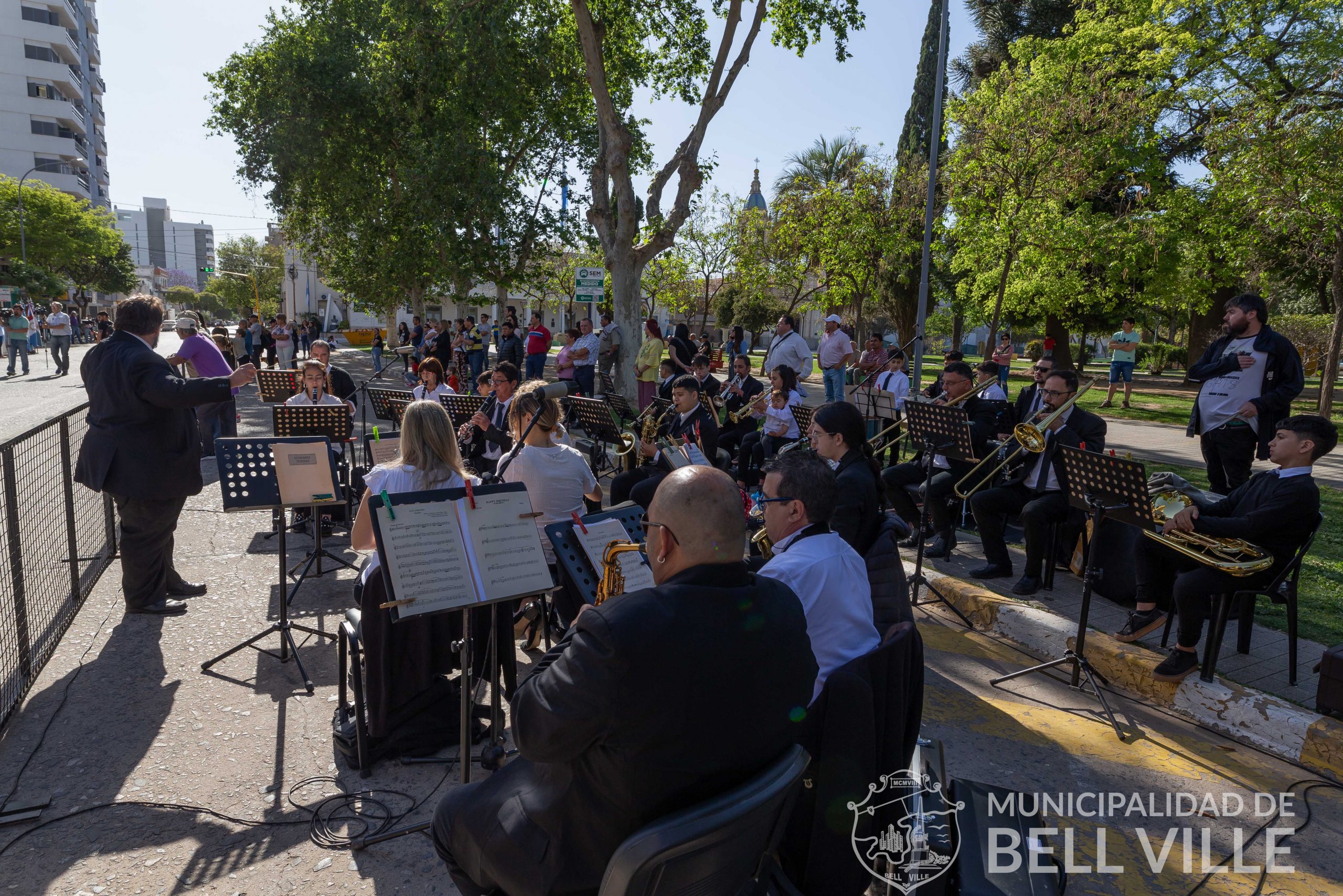 Se contó con el acompañamiento de la Banda Municipal “Ernesto Alfonso Bianchi” bajo la dirección del maestro Leonardo Borgiani y la invocación religiosa estuvo a cargo del sacerdote Sergio Fernández, titular de la Parroquia de Cristo Rey.