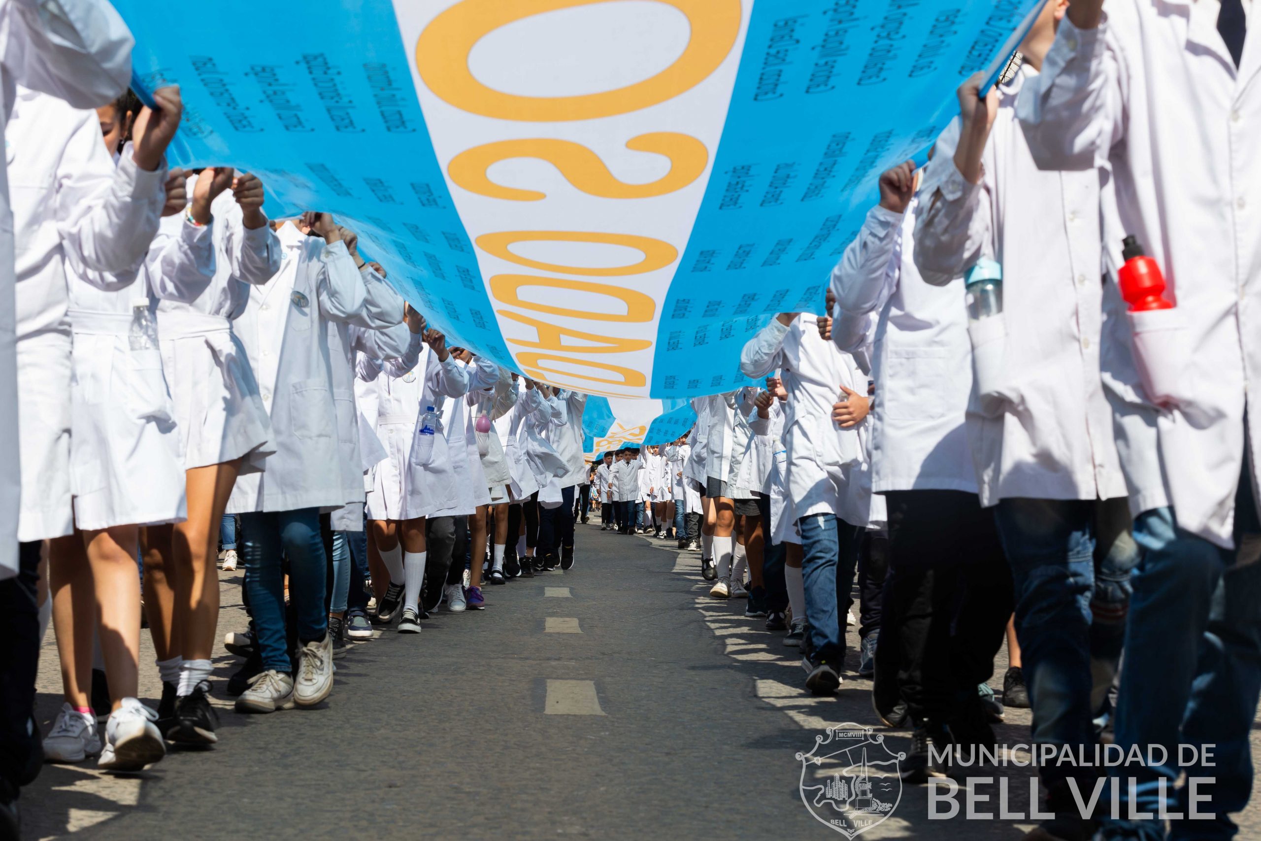 Este año, la bandera de Bell Ville fue portada por alumnos y egresados del Instituto Montessori como ejemplo del esfuerzo y superación personal constante.