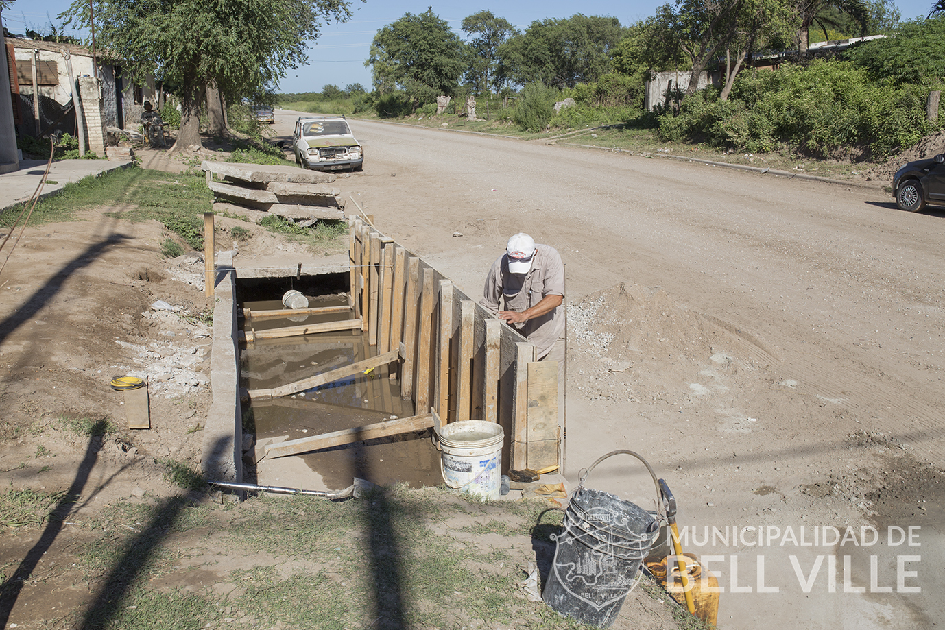 Trabajos que permitirán un mayor drenaje de aguas pluviales se están cumpliendo en el canal de desagüe Oeste, en el sector de bulevar Illia y calle Falucho.