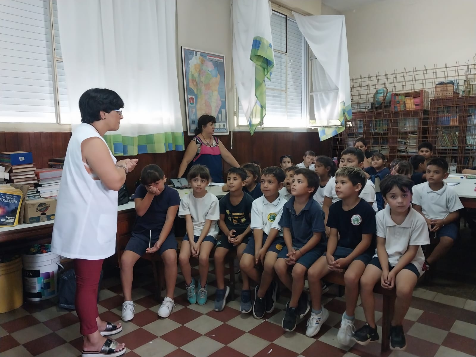 Con el ciclo lectivo 2024 en pleno desarrollo, el equipo municipal de Salud Animal brindó una charla educativa en la Escuela José María Paz, donde los niños visualizaron imágenes que daban lugar al intercambio de ideas, guiándolos en las buenas prácticas de las tutorías responsables. Encabezado por el Médico Veterinario Mario Cacciavillani, con el acompañamiento las auxiliares Nancy Gutiérrez y Patricia Filippi, además del encargado Prof. Rodrigo Nieva, el grupo fue recibido por docentes y estudiantes de 1°, 2° y 3° Grados, así como por su directora Estela Machado.