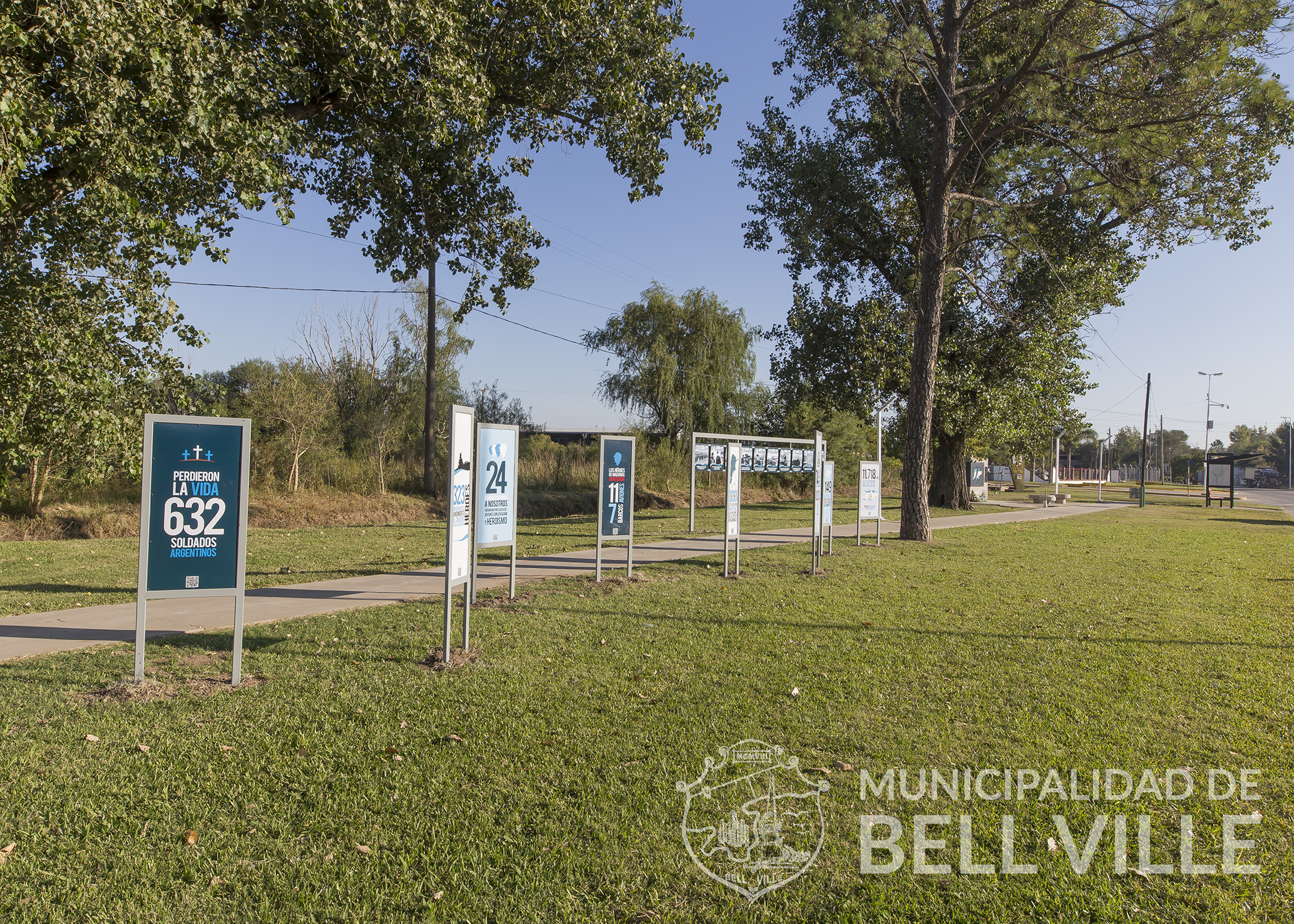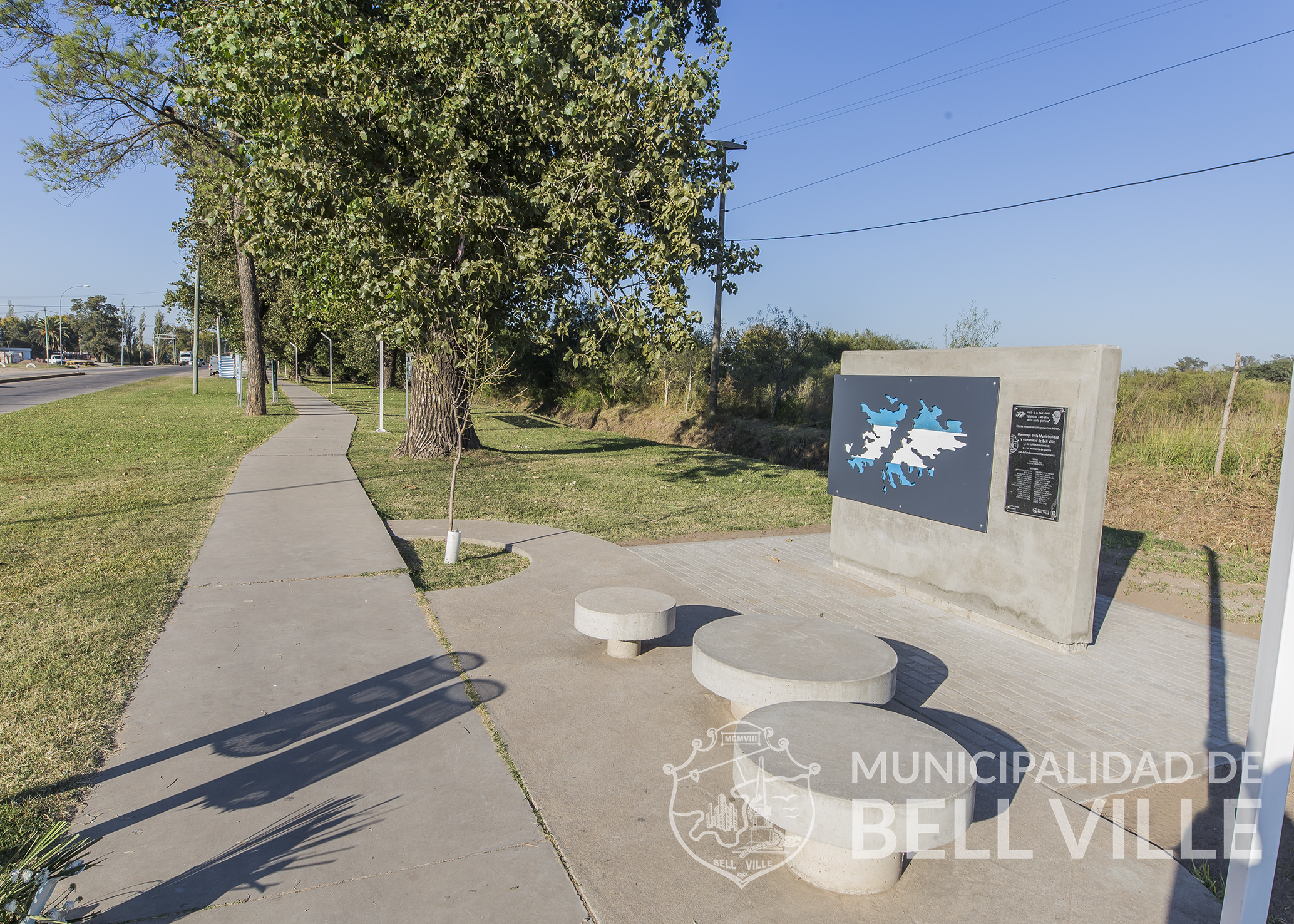 Ante un importante cúmulo de acontecimientos en estos últimos años, conmemorativos a Malvinas, es oportuno recurrir a la historia reciente: se asignaron nombres de calles a veteranos fallecidos y a lugares emblemáticos de las Islas, como así también placas honoríficas para colocar frente a los domicilios de los ex combatientes, medallas de reconocimiento, habilitación y ampliación del Paseo Malvinas (a la vera de la avenida Amadeo Sabatini), además de la recientemente inaugurada obra en mosaiquismo en el costado Sur del primero de los tres mástiles principales de la plaza 25 de Mayo, elevando a tres los lugares públicos con que la ciudad honra permanentemente la memoria de los héroes bellvillenses.