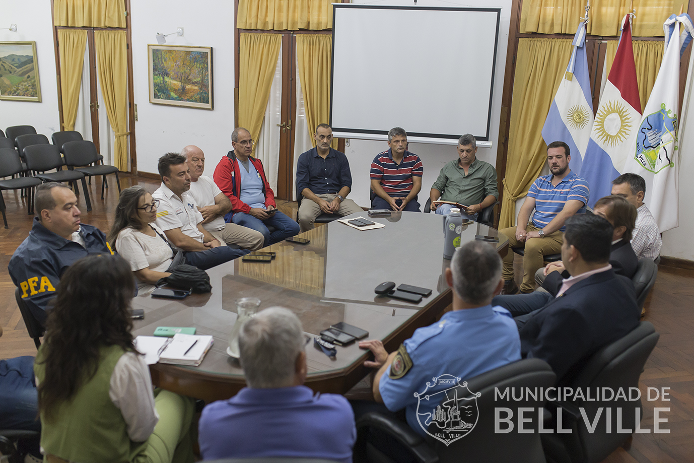 Participaron representantes municipales encabezados por el presidente de Defensa Civil e intendente, Juan Manuel Moroni; Bomberos Voluntarios; Hospital Regional Dr. José Antonio Ceballos; Emergencias Médicas Ya; ANAC-Aeródromo Bell Ville; Policía Federal; Radio Club Bell Ville y Departamental Unión de Policía de la Provincia de Córdoba.