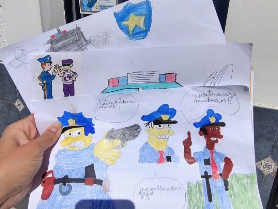 Aunando esfuerzos y coordinación, se llevó a cabo la visita y entrega de los trabajos en la dependencia policial de calle Rivadavia 126, obteniendo a cambio por la participación un detalle como regalo a cada niño.