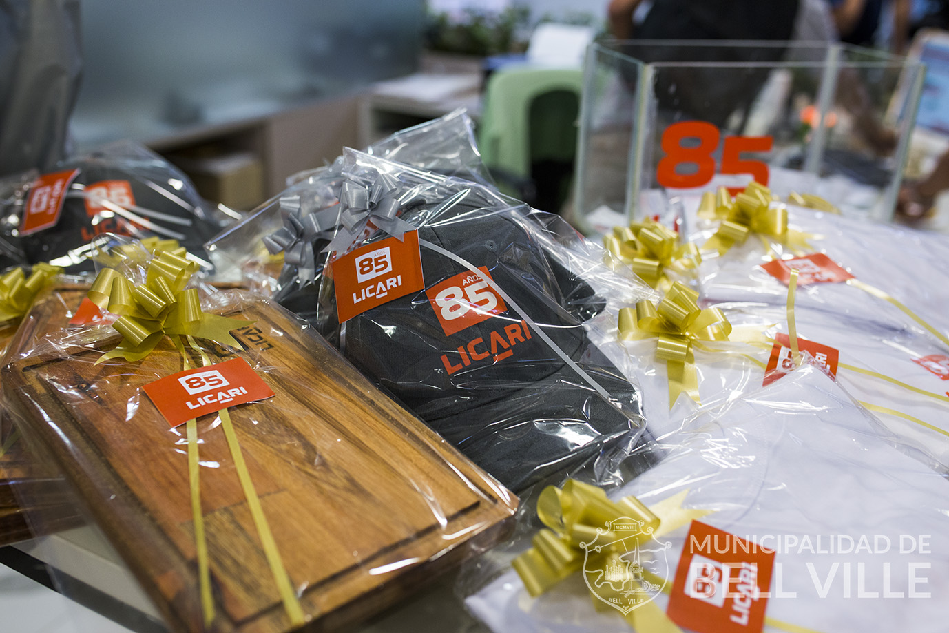 En la ocasión, el intendente municipal, Juan Manuel Moroni, entregó a la familia Licari una placa de reconocimiento en nombre de toda la comunidad, resaltando en ella que “Licari S.A. en sus 85 años de vida comercial, mantiene con fortaleza el espíritu de sus fundadores basado en el esfuerzo, empeño, perseverancia y honestidad; acompañando el crecimiento de la ciudad que, en cada edificación, presenta una parte del corazón de la gran familia que integran directivos y personal de esta empresa, orgullo bellvillense”.