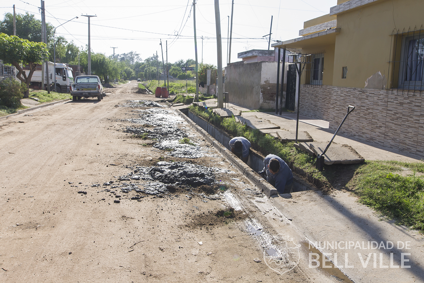 En la continuidad de varias intervenciones municipales en la zona Noreste de la ciudad, personal de Obras Públicas, lleva adelante la limpieza del desagüe de calle América, entre pasaje Martín Fierro y Rodríguez Peña, extrayendo los residuos propios de los canales y otros de aguas no pluviales.