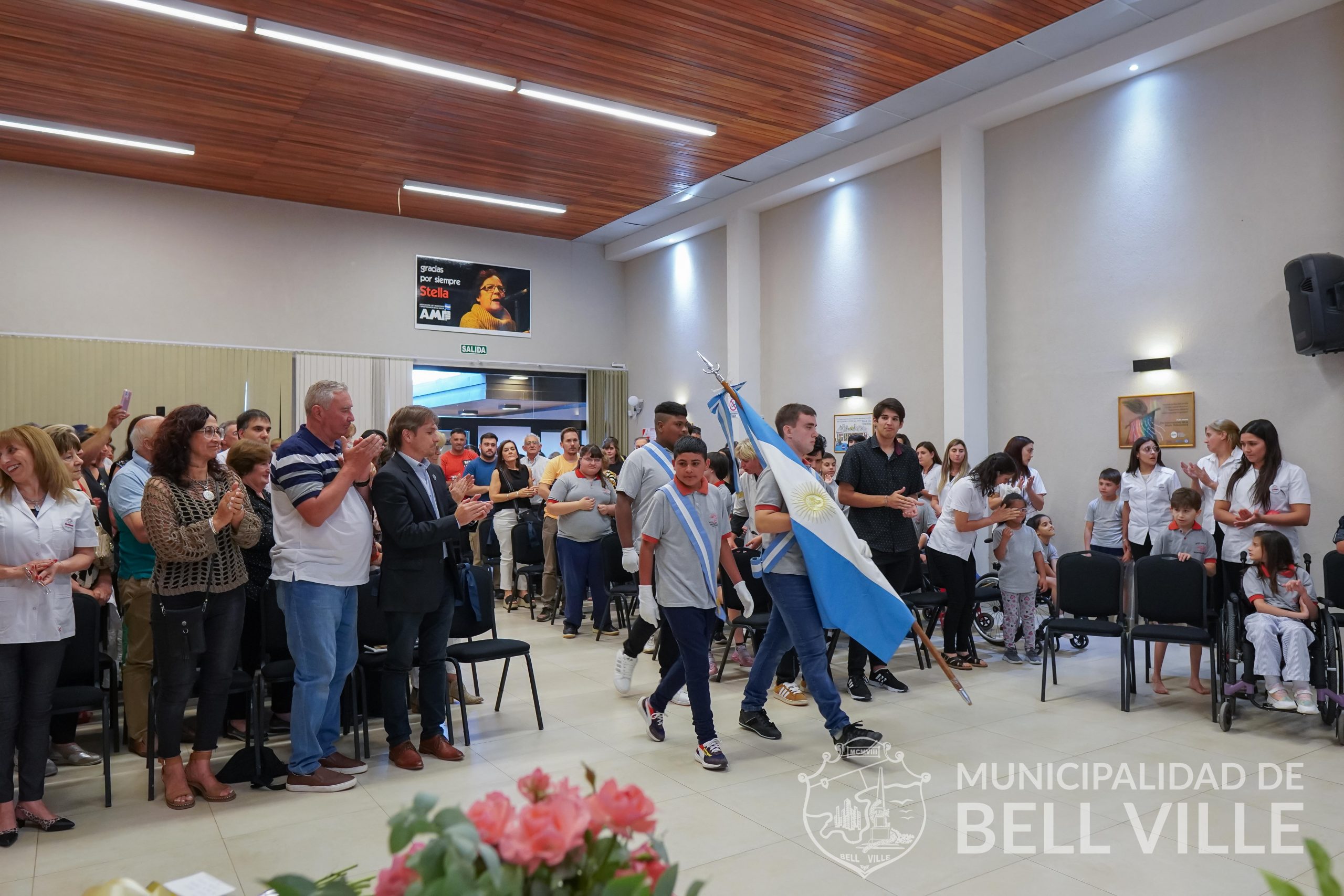 El intendente Juan Manuel Moroni, acompañado del director de Deportes, Daniel Pagliarone, participaron de la emotiva ceremonia de entrega de los correspondientes diplomas y medallas a Ezequiel Messini y Leandro Lista (Secundario) y Bruno Bertello, Alejo Correa, Selene Funes, Thiago Giménez y Lucía Lomello (Primario).