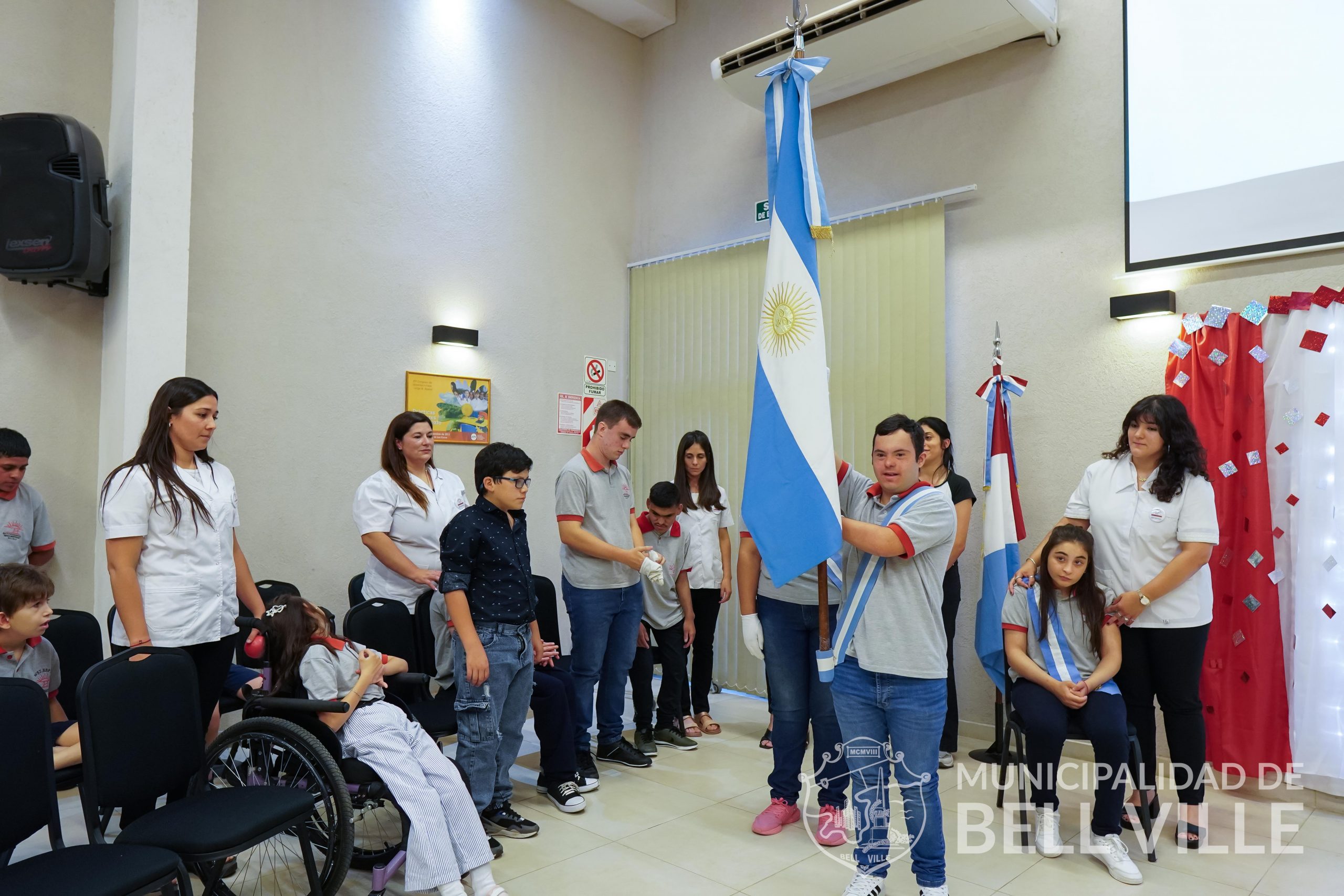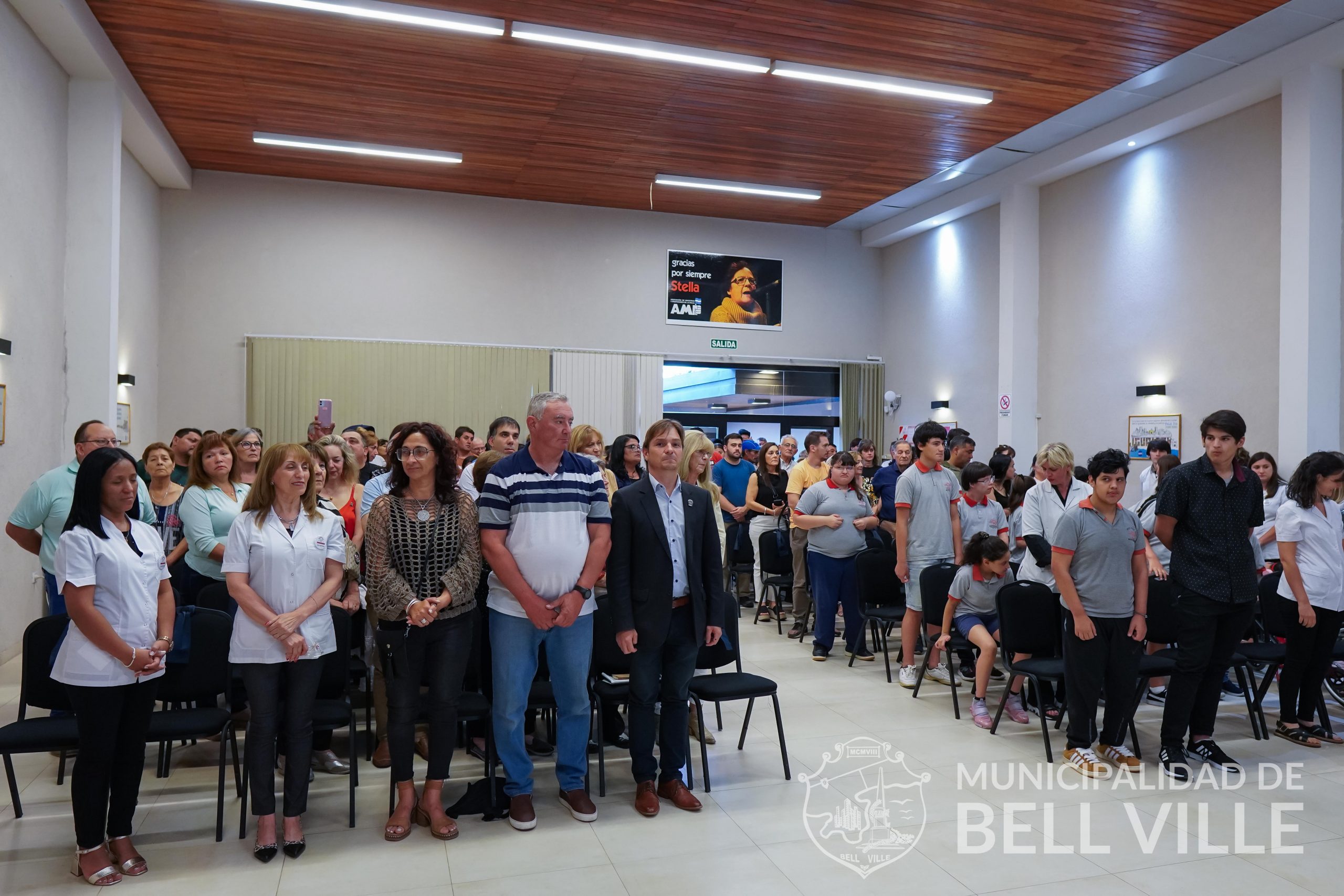 La comunidad educativa en pleno, encabezada por la directora del Instituto, Andrea López, colmó el salón de actos, oportunidad en que se cumplió el cambio y entrega de la bandera a los estudiantes Valentina Fernández, Milagros Gómez y Gino Gagliesi.