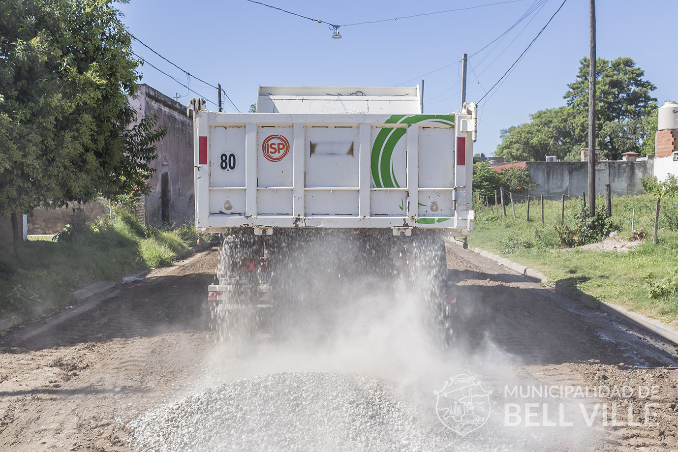 El trabajo se cumple en calle Nicanor Costa Méndez entre Maipú y Progreso, mientras que la cuadra de Progreso a Perito Moreno, por ahora se cumple un nivelado, previéndose posteriormente incorporar piedra partida.