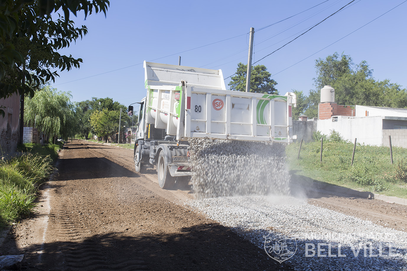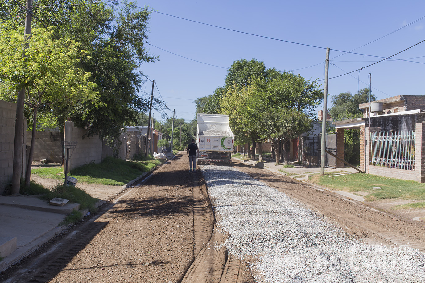 Maquinaria y personal de la Municipalidad se encuentra trabajando en el nivelado y compactado de calles de tierra en la parte Sudeste de la ciudad, para lo cual se incorpora material árido a fin de otorgarle al piso mayor firmeza y durabilidad.