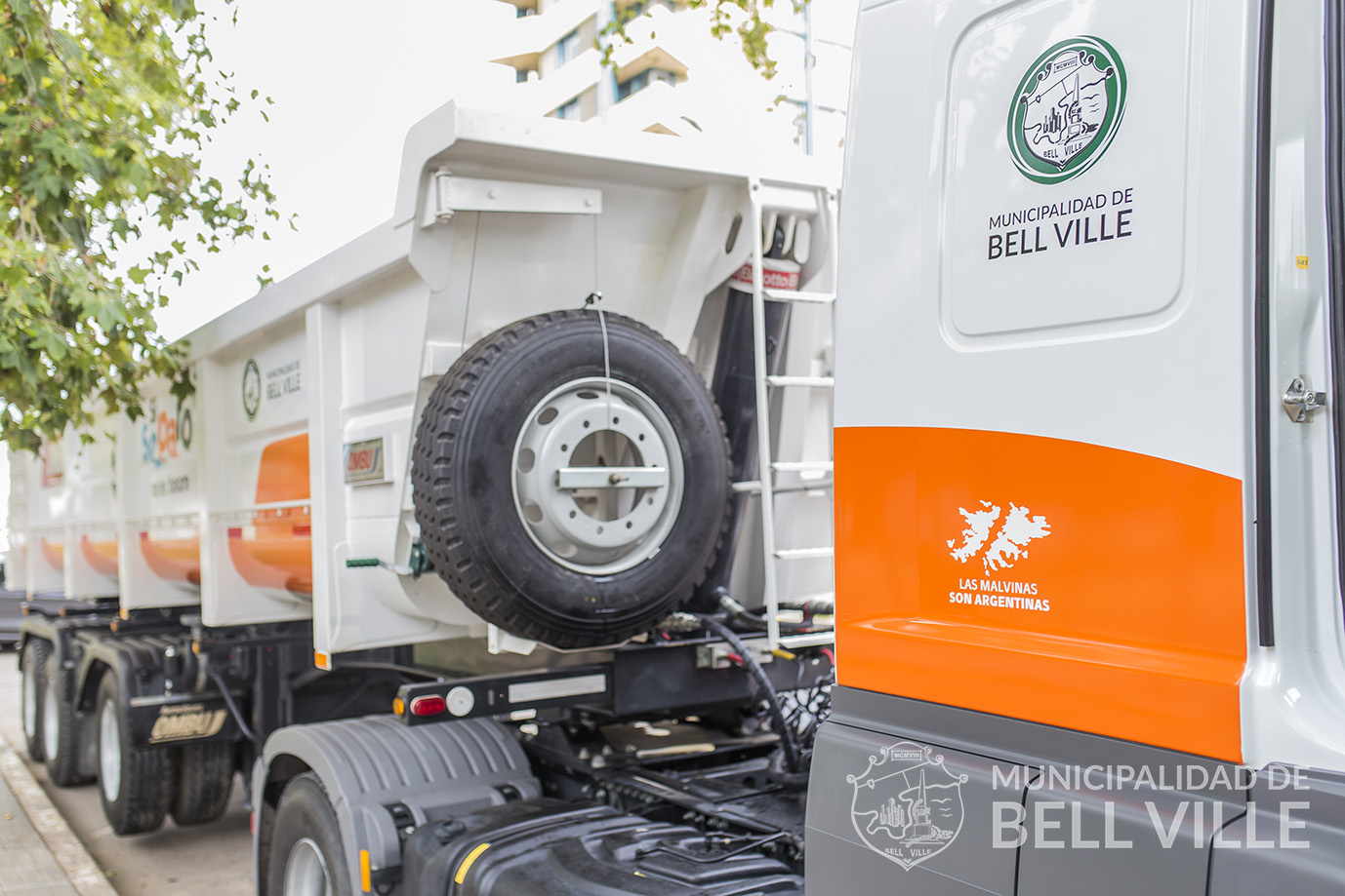 El intendente Juan Manuel Moroni, presentó el nuevo semirremolque batea volcadora de tres ejes, ultima unidad de una compra de bienes de capital que hizo el municipio el año pasado, en base a un crédito otorgado por el Banco de la Provincia de Córdoba.