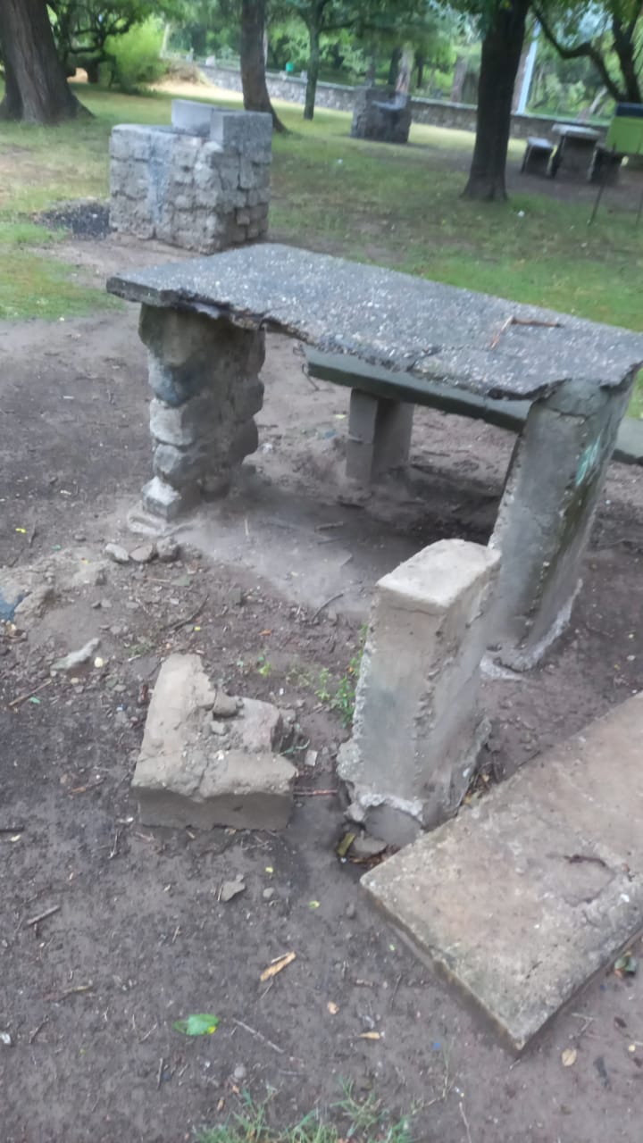 En el sector recreativo de la Reserva Natural Francisco Tau, son continuos los desmanes contra la infraestructura del lugar, afectándose principalmente a asadores, mesas y bancos de piedra y cemento.