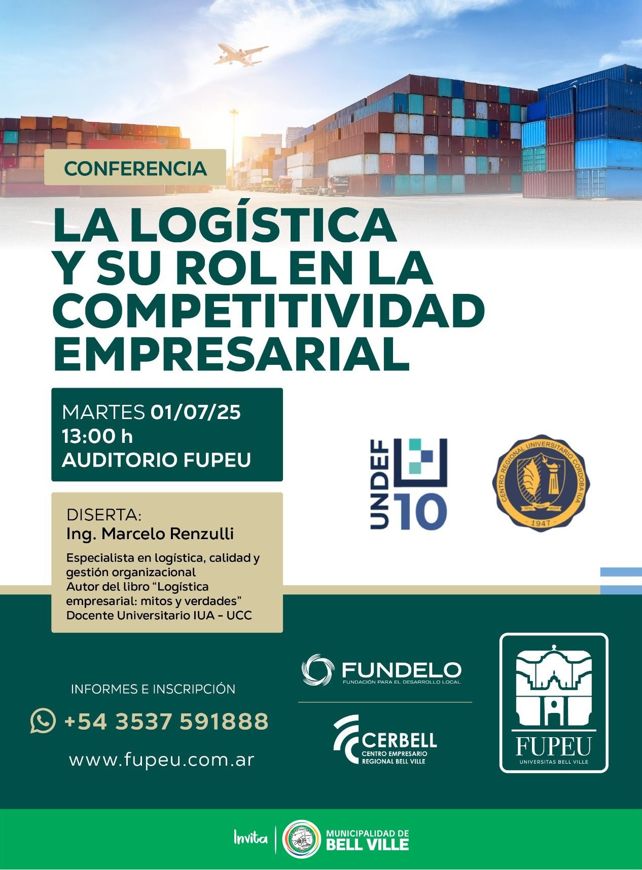 El próximo martes 1 de julio a las 13:00 hs. se realizará en el Auditorio de FUPEU (Bv. Colón 959) la conferencia titulada “La logística y su rol en la competitividad empresarial”, un encuentro que busca aportar herramientas clave para el fortalecimiento organizacional y la eficiencia en los procesos productivos.