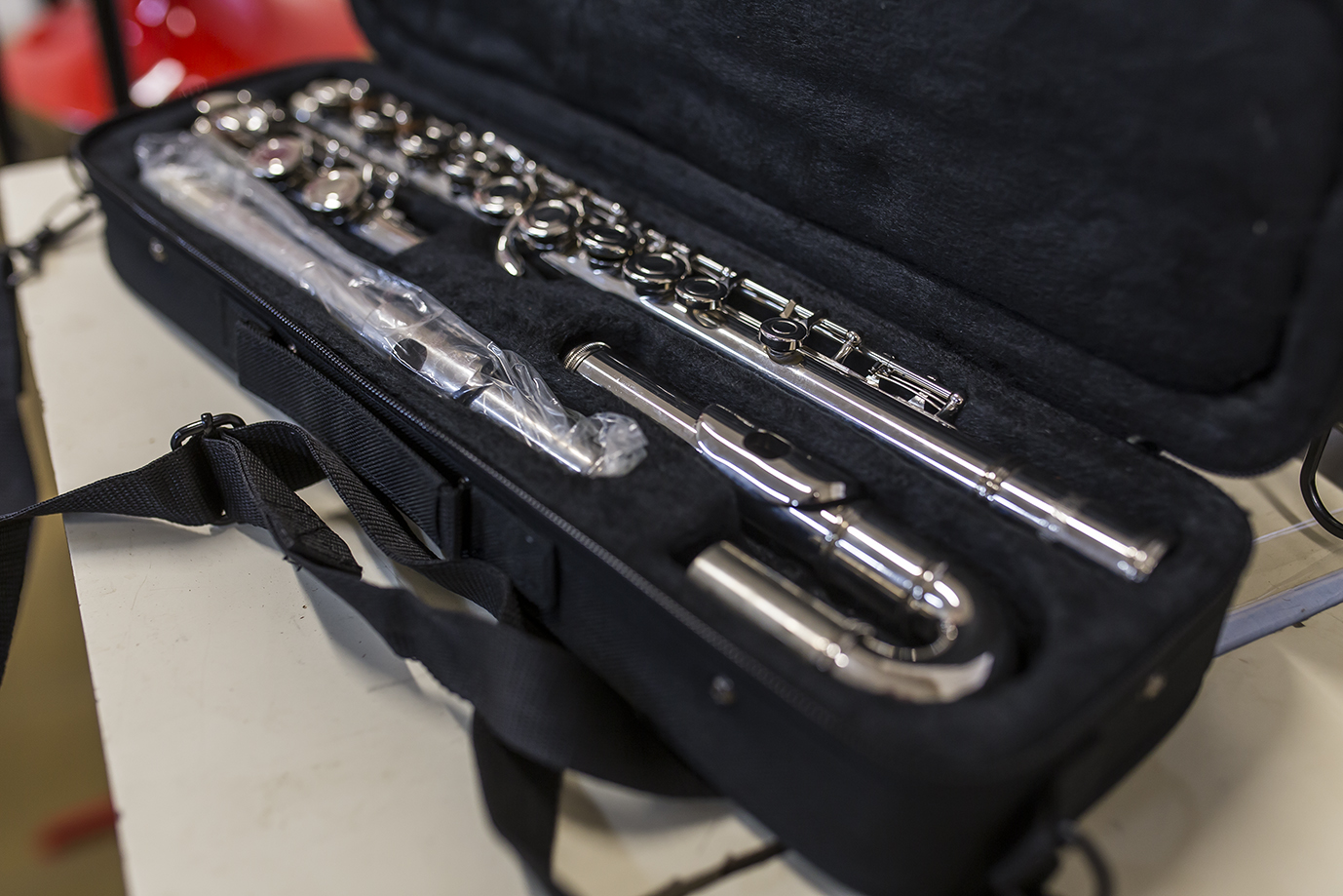 Entre los instrumentos de viento, se incorporaron una trompeta y un trombón plásticos, una flauta traversa con cabezal curvo y un saxo soprano curvo. Estas versiones livianas fueron elegidas especialmente para estudiantes más pequeños, ya que permiten una ejecución más cómoda y adecuada a su contextura física.