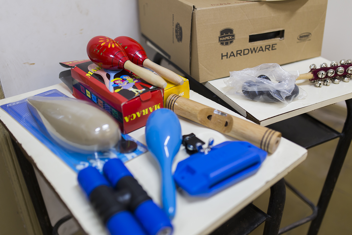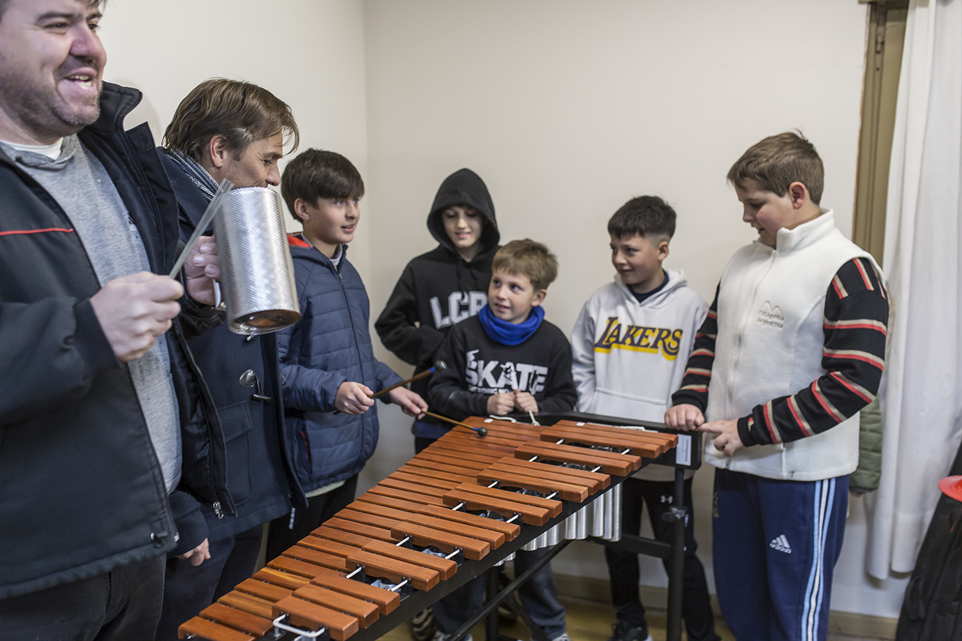 En cuanto a la percusión, se sumaron diversos accesorios, un tambor, baquetas, parches, y especialmente dos instrumentos clave que se incorporan por primera vez: glockenspiel y xilófono. Estos aportan una dimensión melódica fundamental en la formación de los alumnos de esta cátedra, una de las más numerosas de la escuela.