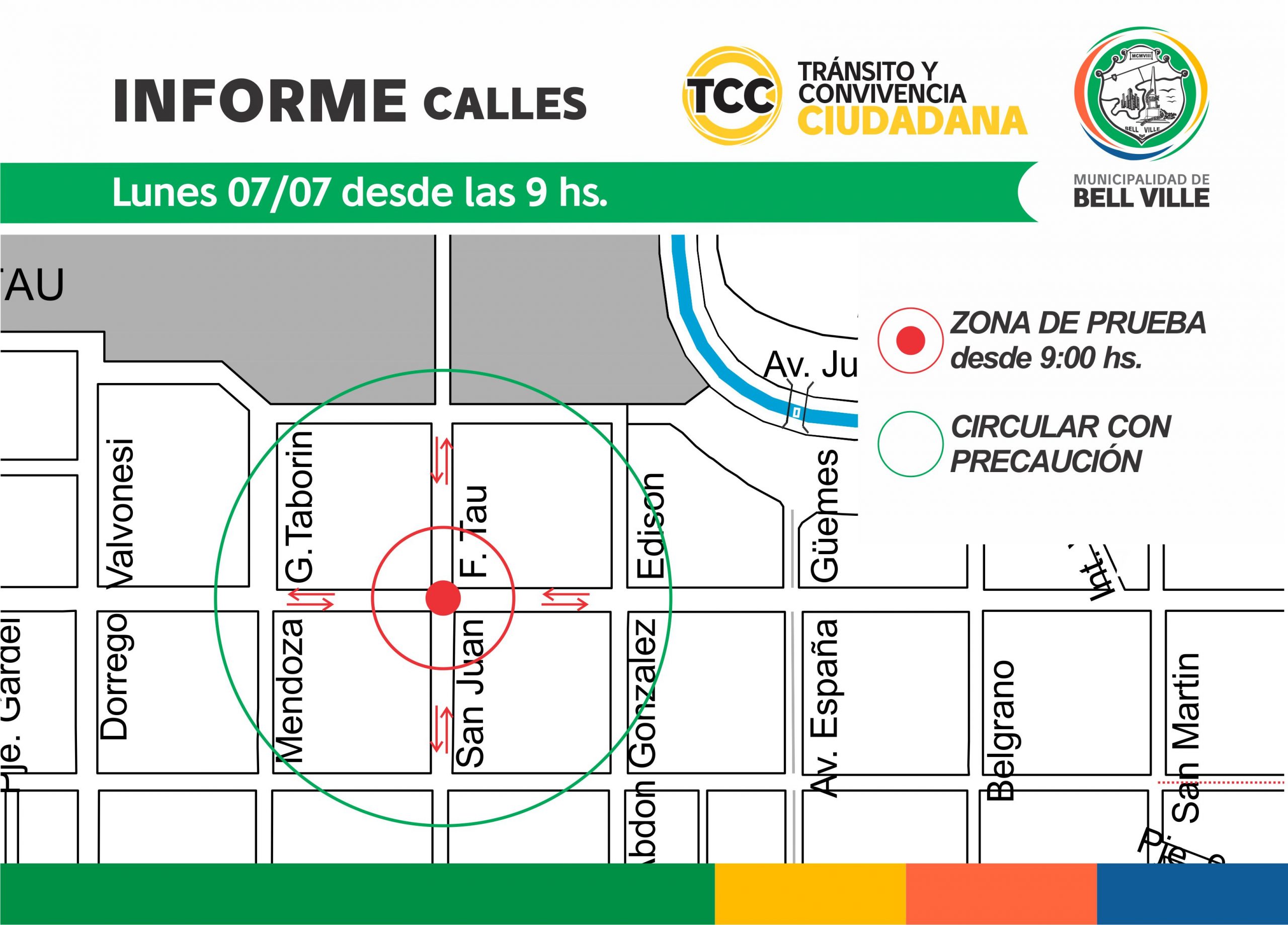 Desde la Dirección de Tránsito y Convivencia Ciudadana se informa que el próximo lunes 7 de julio, a partir de las 9:00 hs, se intervendrá la intersección de calles Córdoba y San Juan con la colocación de un ordenador vial provisorio y cartelería indicativa.