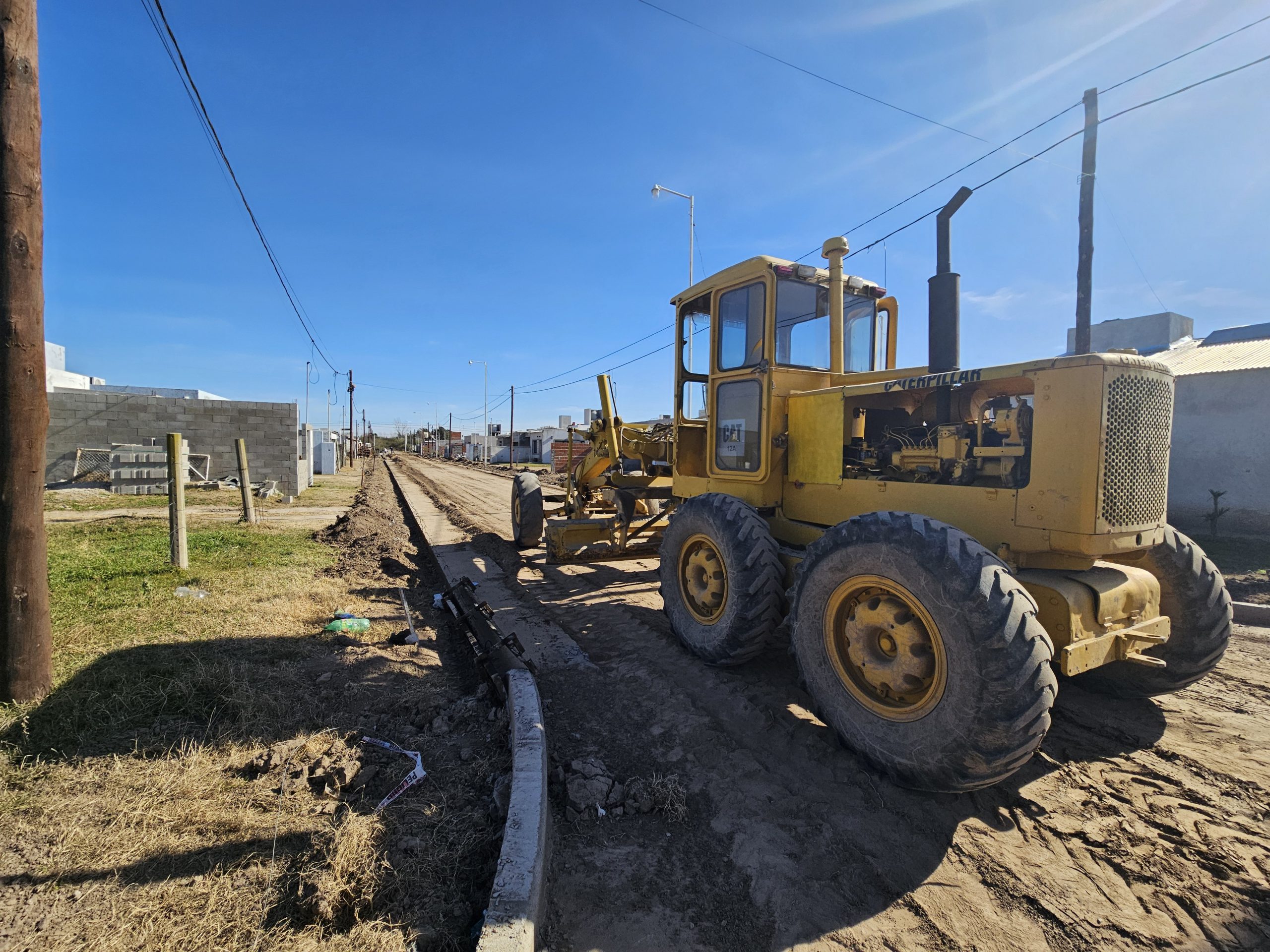 Continúan los trabajos de cordón cuneta en barrios Los Espinillos, ejecutados a través de una empresa local contratada por el municipio.