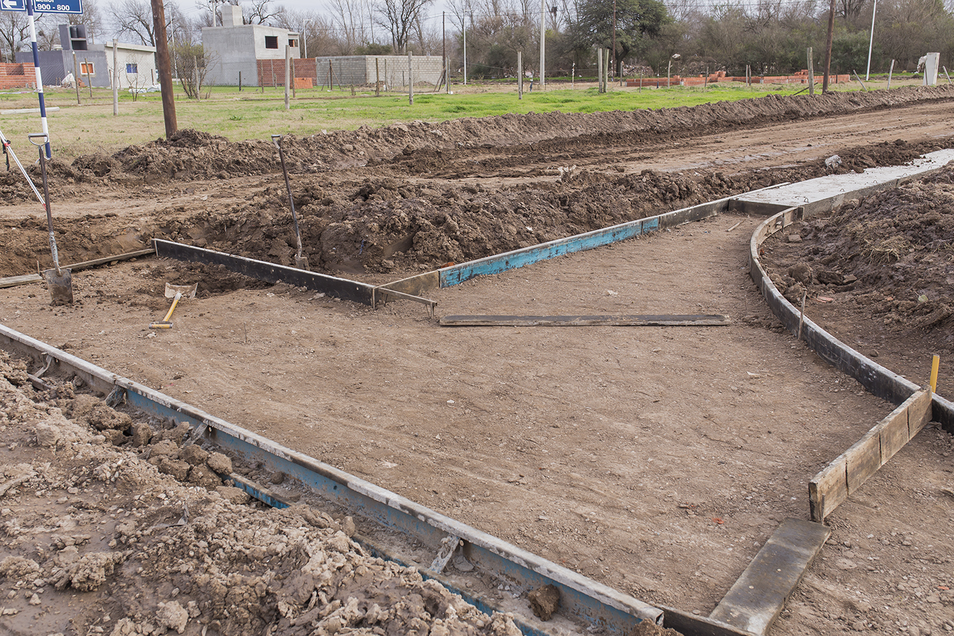 La obra de cordón cuneta en barrio Los Espinillos llegó al 70% de ejecución.