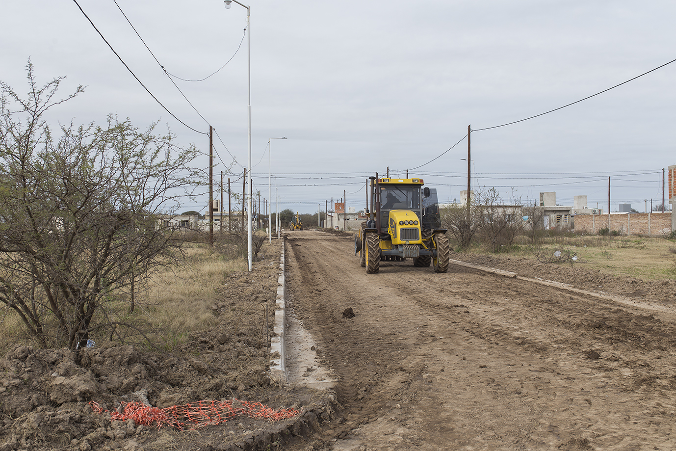 Con un 70% de la obra ya realizada, continúan los trabajos de cordón cuneta en barrio Los Espinillos, ejecutado a través de una empresa local contratada por la Municipalidad.