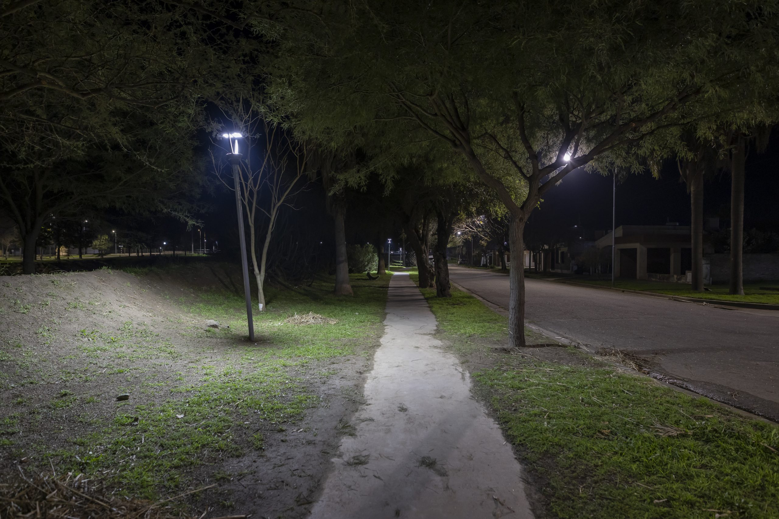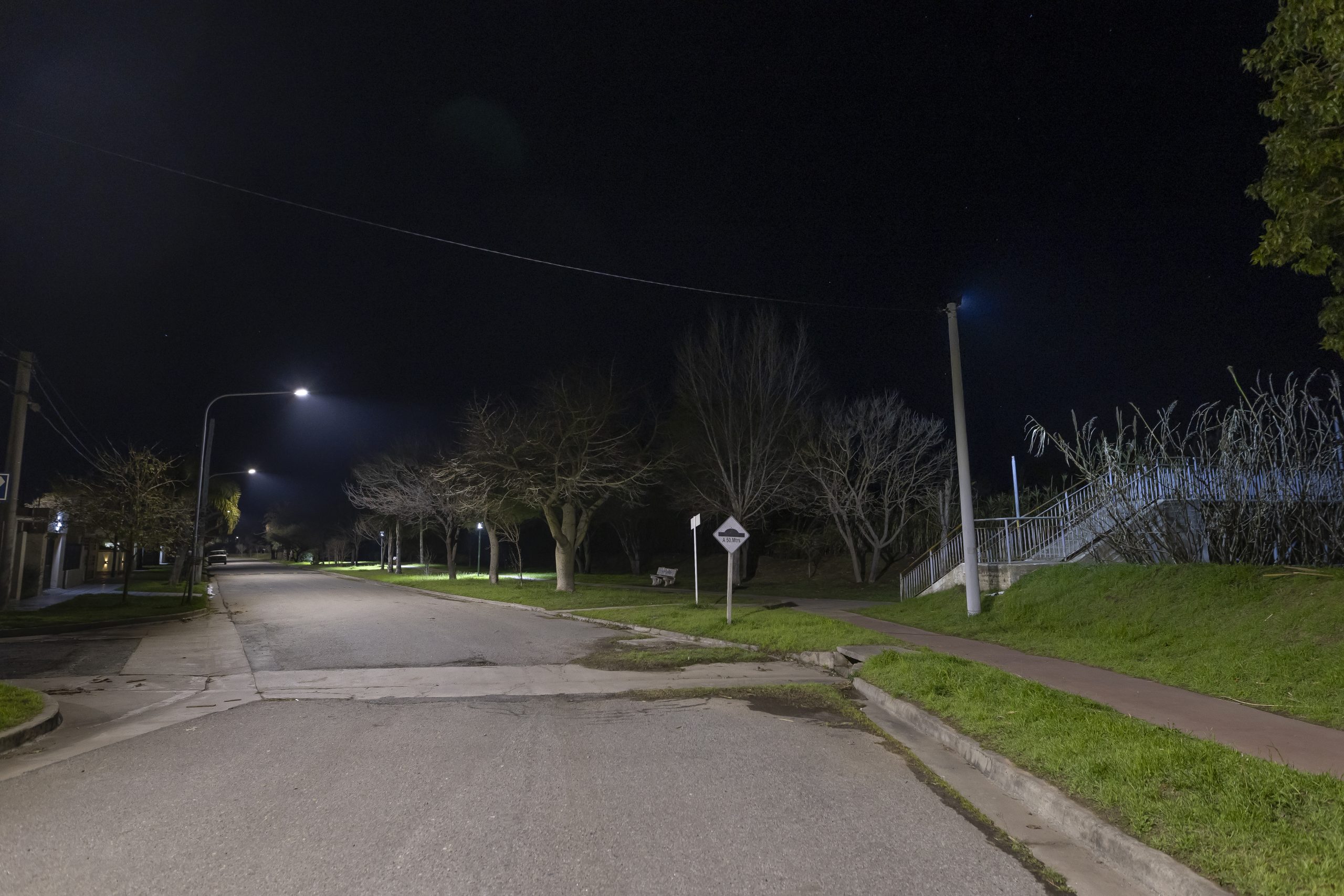 Recientemente, personal del área de alumbrado público instaló 46 nuevos artefactos LED de 100 vatios para mejorar la iluminación del barrio Portal del Río.