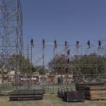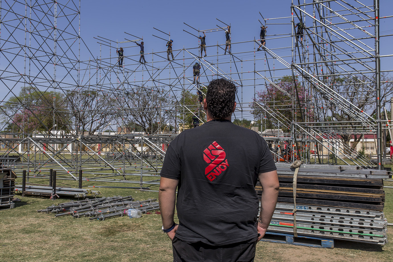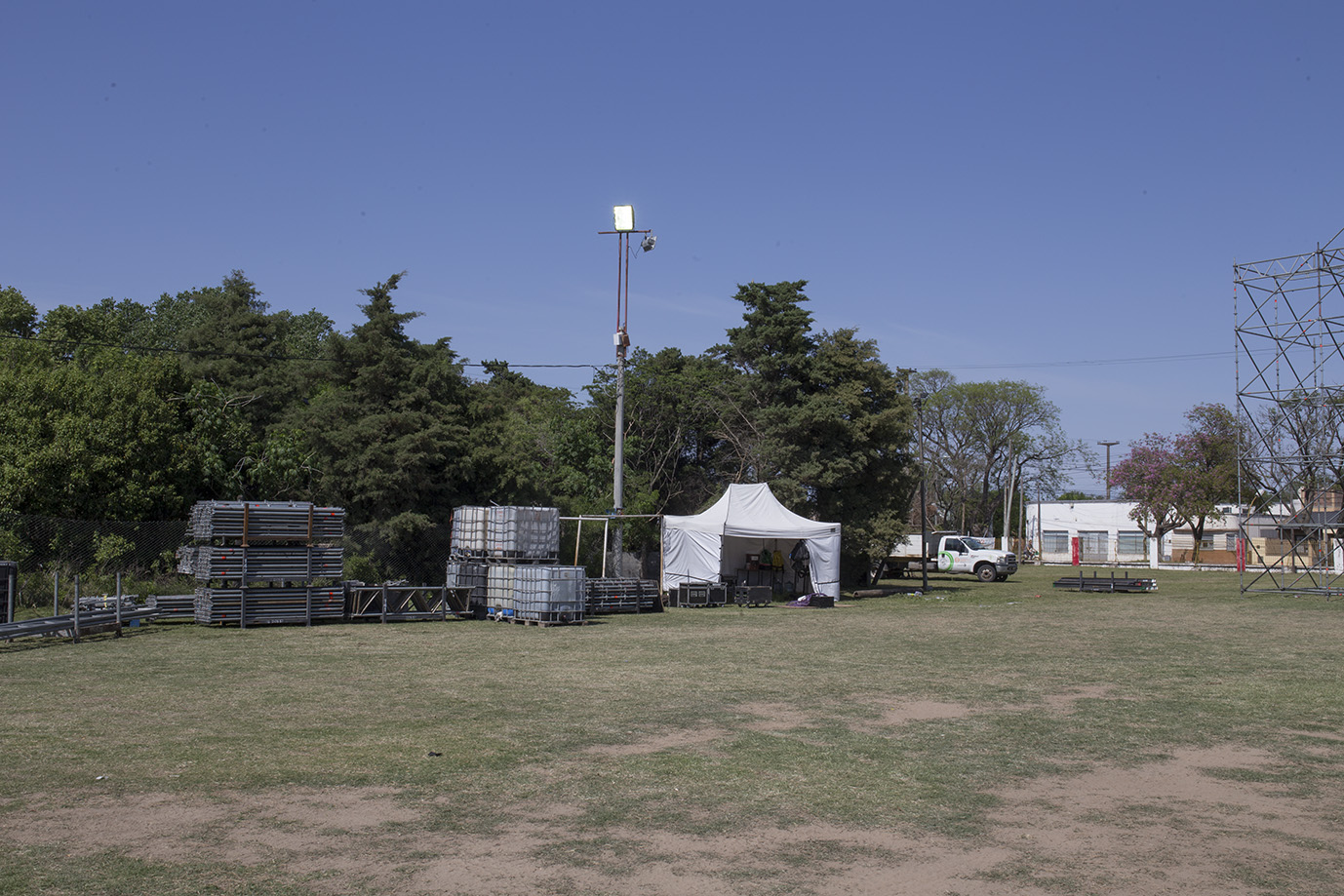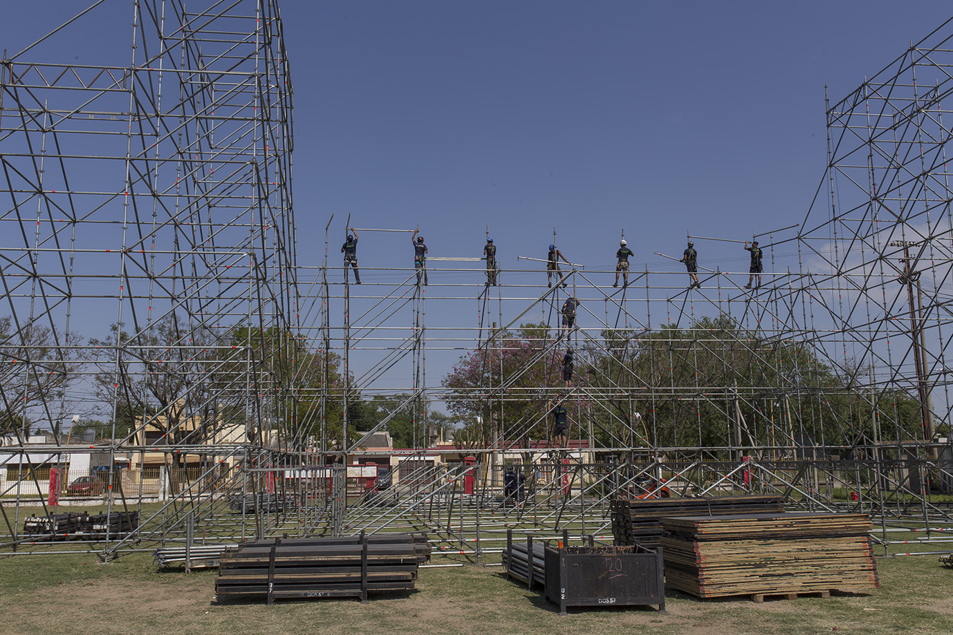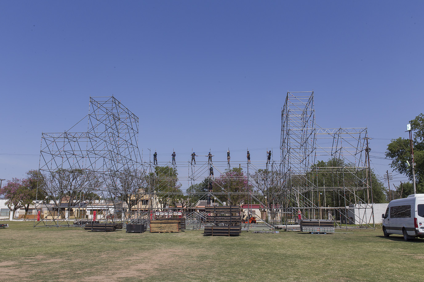 Personal de Enjoy Producciones ya está montando el mega escenario para la XXIIª Fiesta Nacional de la Pelota de Fútbol, el próximo 1 de noviembre.