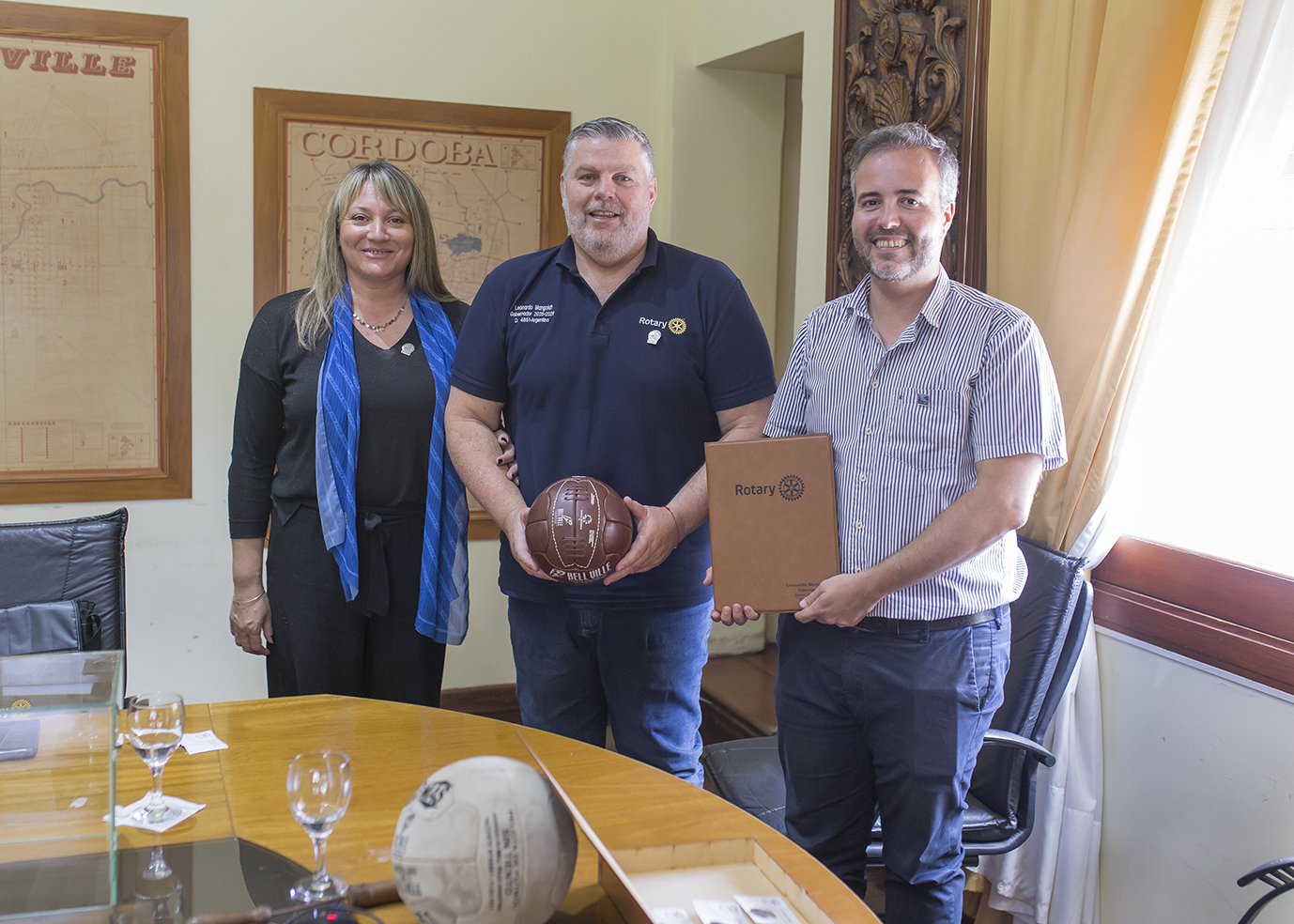 Acompañado por los presidentes del Rotary Club Bell Ville y del Rotary Club Bell Ville Ideas Unidad -Luis Werlen Zbrun y Daniel López, respectivamente-, el dirigente oriundo de Carlos Paz fue recibido en la Sala de Intendencia por el secretario de Gobierno Gastón Nilia y la directora de Comunicación Carolina Pranzoni.