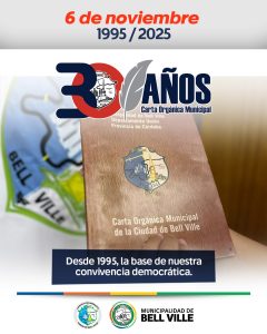 En Bell Ville, la Carta Orgánica se juró el 6 de noviembre de 1995. En 1994, mediante Ordenanza Nº 785, el Concejo Deliberante convocó a la Convención Municipal a los fines de su redacción y dictado. Esa manda se promulgó mediante el Decreto Nº 503 “A”, firmado por el entonces intendente Nelson Gonella.