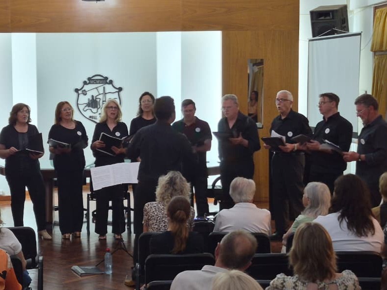 Participaron el Coro de Adultos SENEX del Conservatorio Superior de Música Gilardo Gilardi, el Coro del Club Sarmiento de Leones -ambos dirigidos por Juan Pablo Ferreyra- y el Coro Polifónico bellvillense.