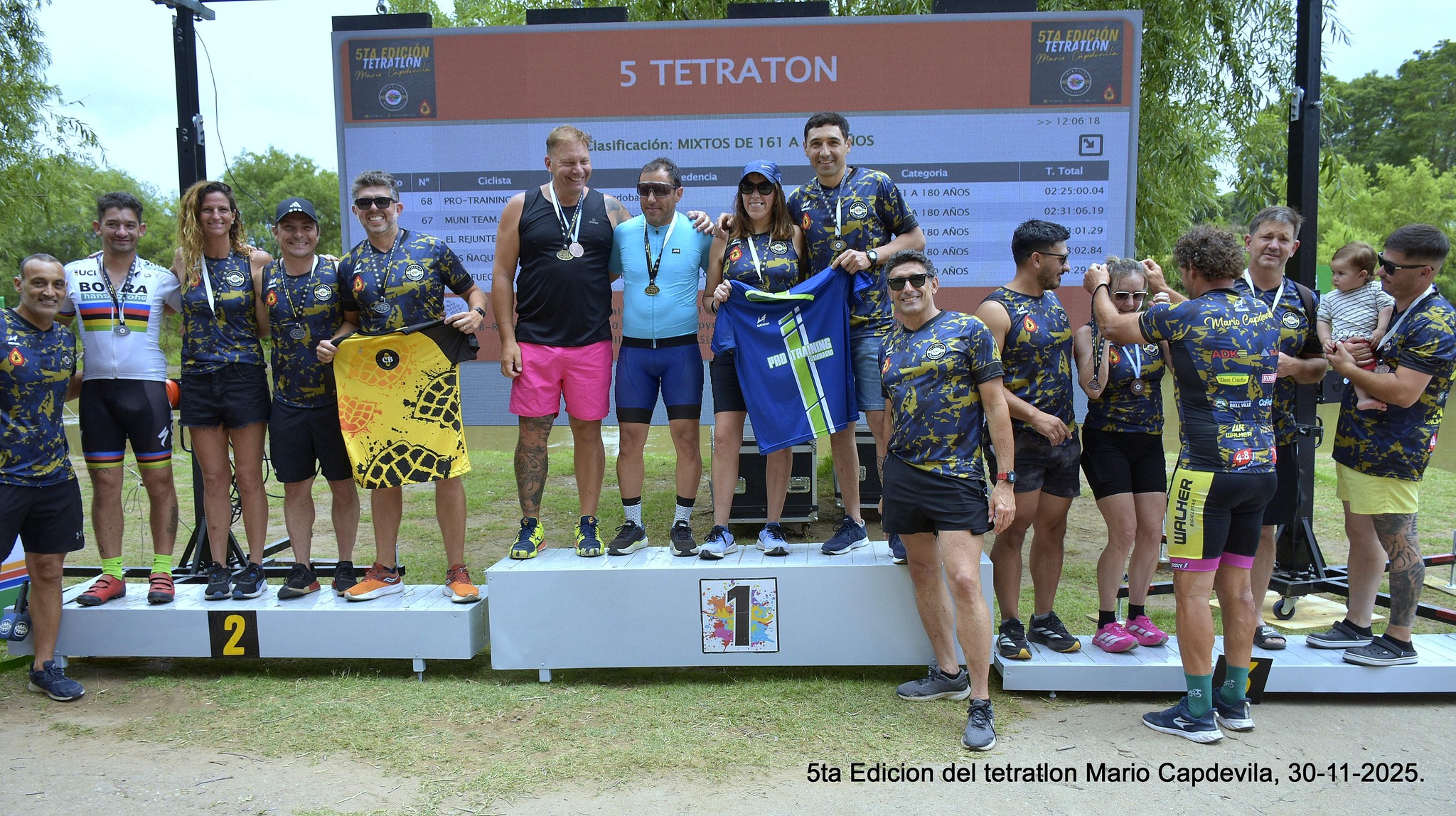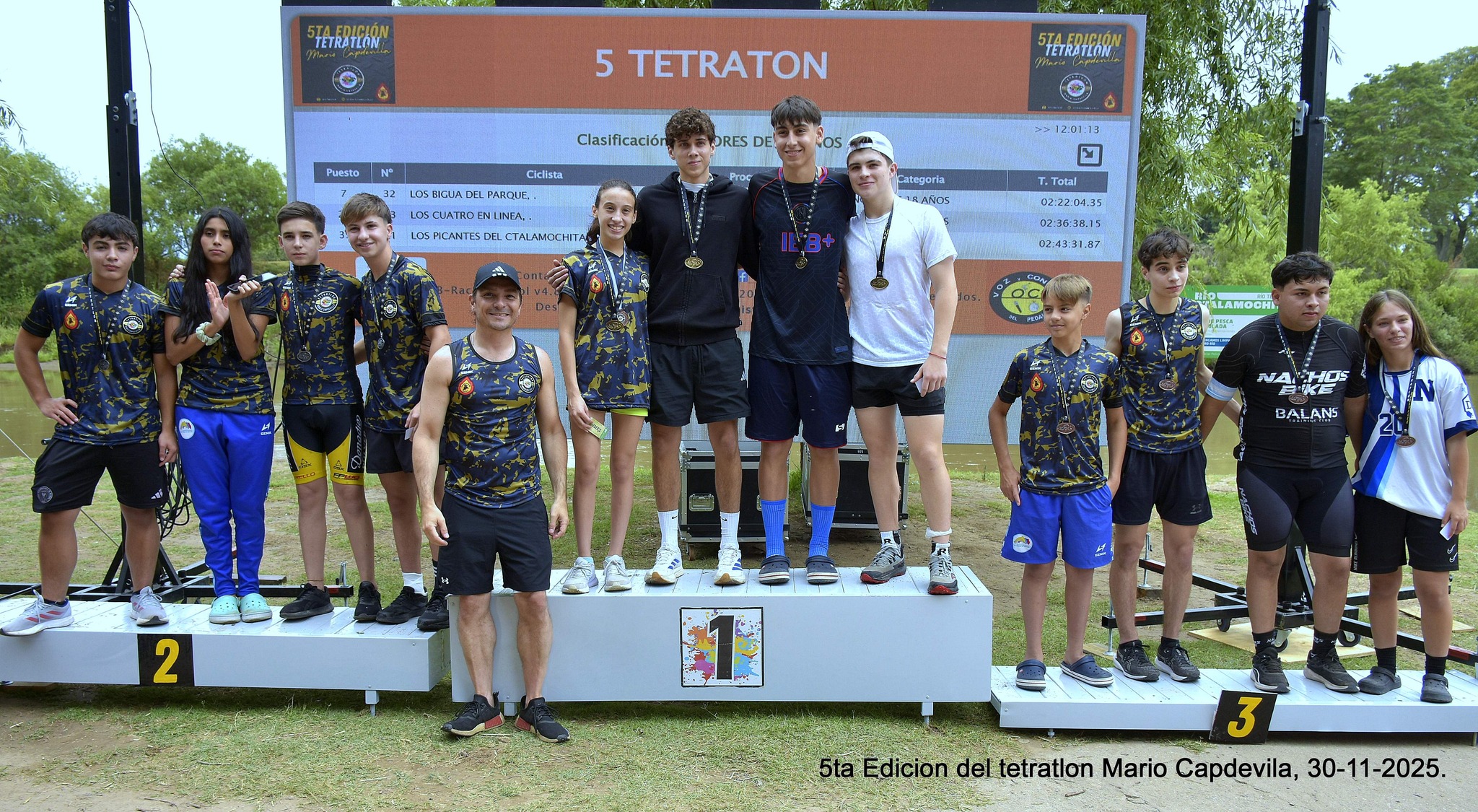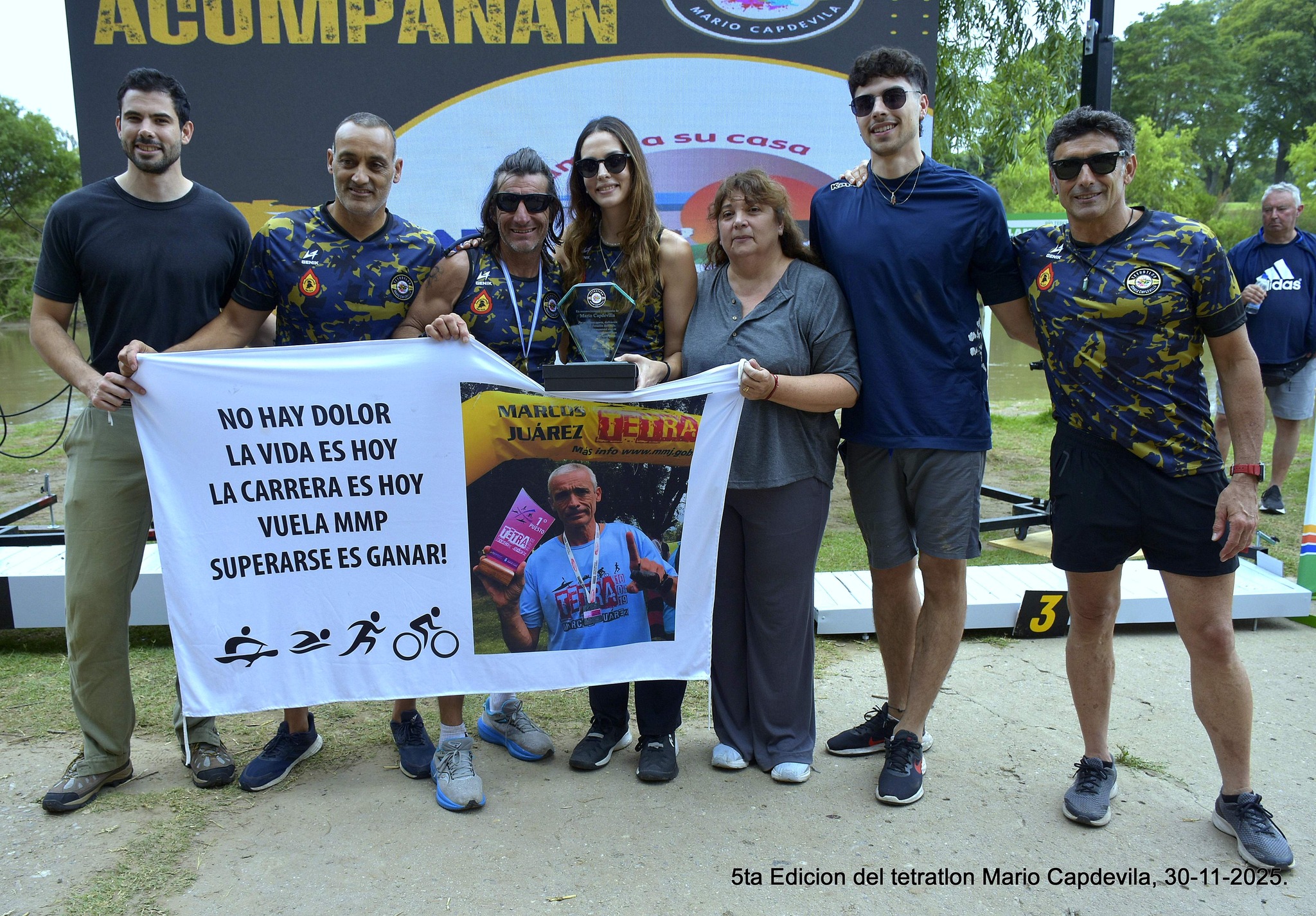 La comunidad del Tetratlón Bell Ville también dedicó un emotivo homenaje a Mario Capdevila, impulsor de la prueba, miembro de la organización y habitual protagonista de la modalidad individual. Con la presencia de su familia en el podio y una bandera en su memoria, se compartieron sentidas palabras de reconocimiento.
