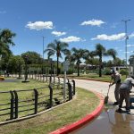Se avanza con la puesta en valor del Paseo de la Reconstrucción, con trabajos de paisajismo y mejora de espacios verdes a cargo de personal municipal, mientras que una empresa contratada ejecuta tareas de consolidación en la calle Junín.