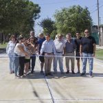 El intendente Juan Manuel Moroni, el secretario de Obras Públicas, Servicios y Ambiente Ernesto Borrageros y la responsable de Centros Vecinales Melba Sartor acompañaron a los frentistas en el corte de cinta que dejó inaugurado el tramo.