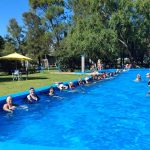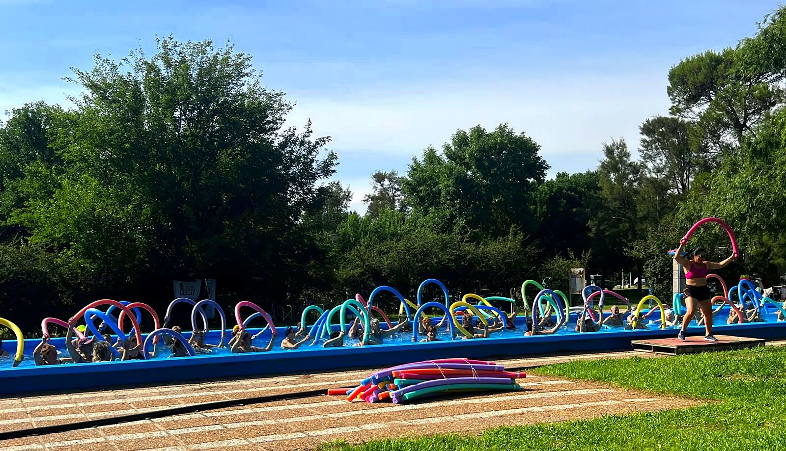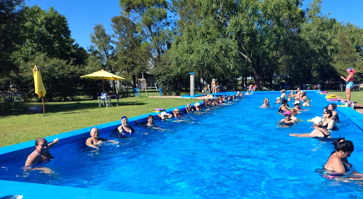 En el marco de su oferta de ejercicios y recreación para adultos en la temporada estival, la Dirección de Deportes de la Municipalidad mantiene, con cupo completo, los módulos de aquagym en la pileta del Aero Club, un lugar ideal para disfrutar el aire libre.