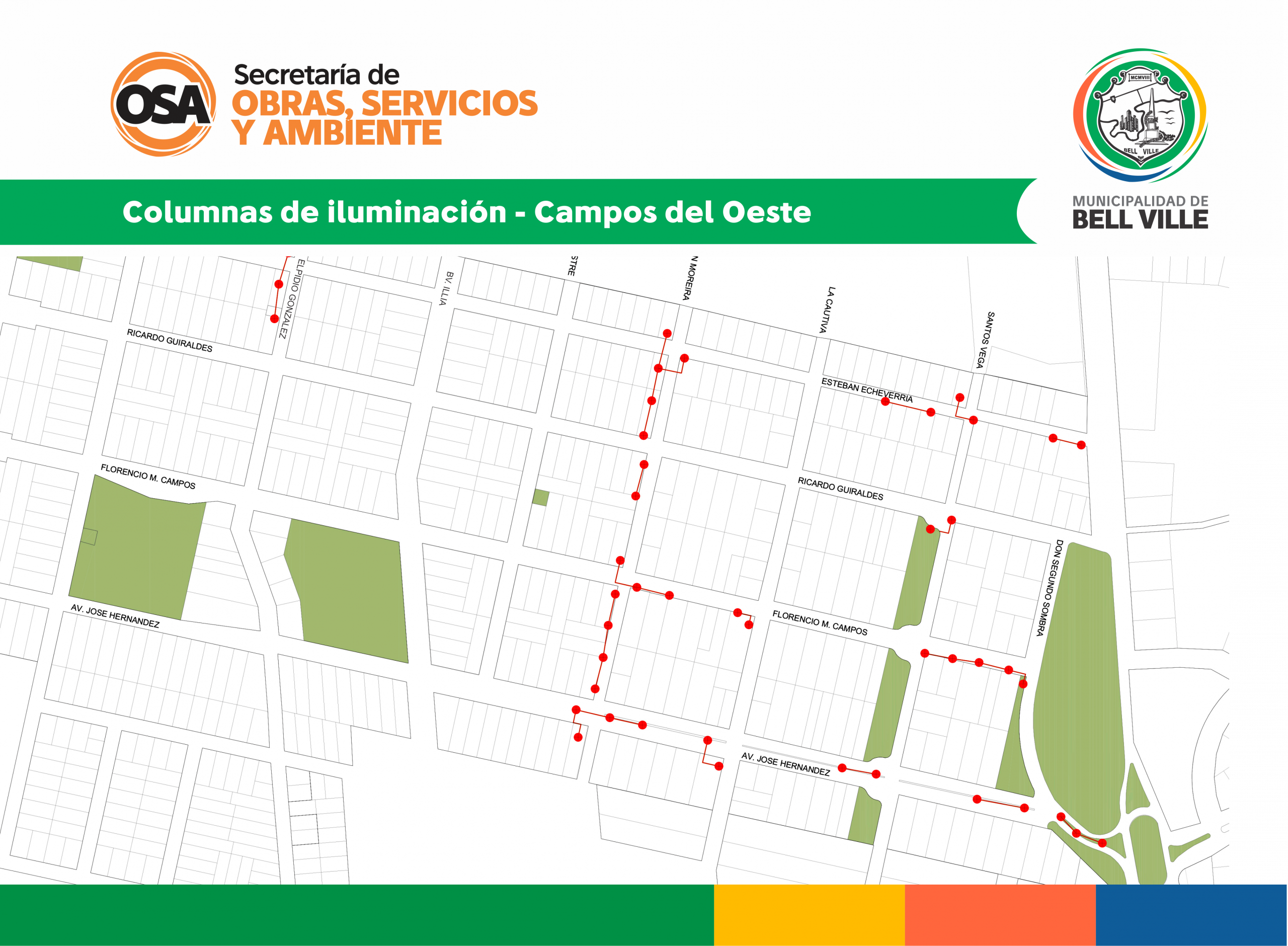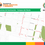 En el marco de las acciones de ordenamiento y mejora del espacio público, se están desarrollando trabajos de soterramiento del cableado del alumbrado público en barrio Campos del Oeste, en el sector oeste de la ciudad.