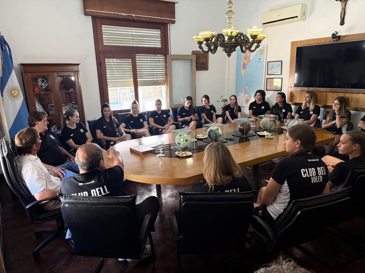 Dando cuenta de la expectativa creada con que Bell Ville sea sede este fin de semana del debut del vóley del Club Bell en la Liga Argentina Femenina, el plantel superior fue recibido esta mañana por el intendente Juan Manuel Moroni.