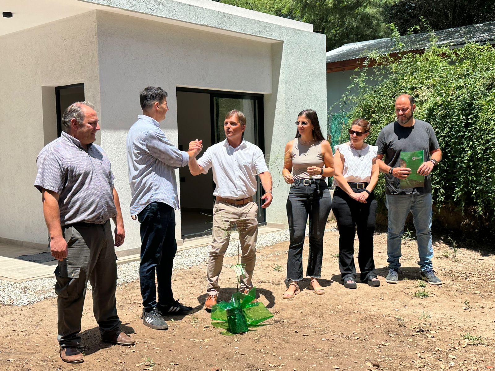 El acto de entrega estuvo encabezado por el intendente Juan Manuel Moroni, acompañado Ernesto Borrageros, junto a la arquitecta Luján Bruno, responsable del área de Vivienda del municipio.