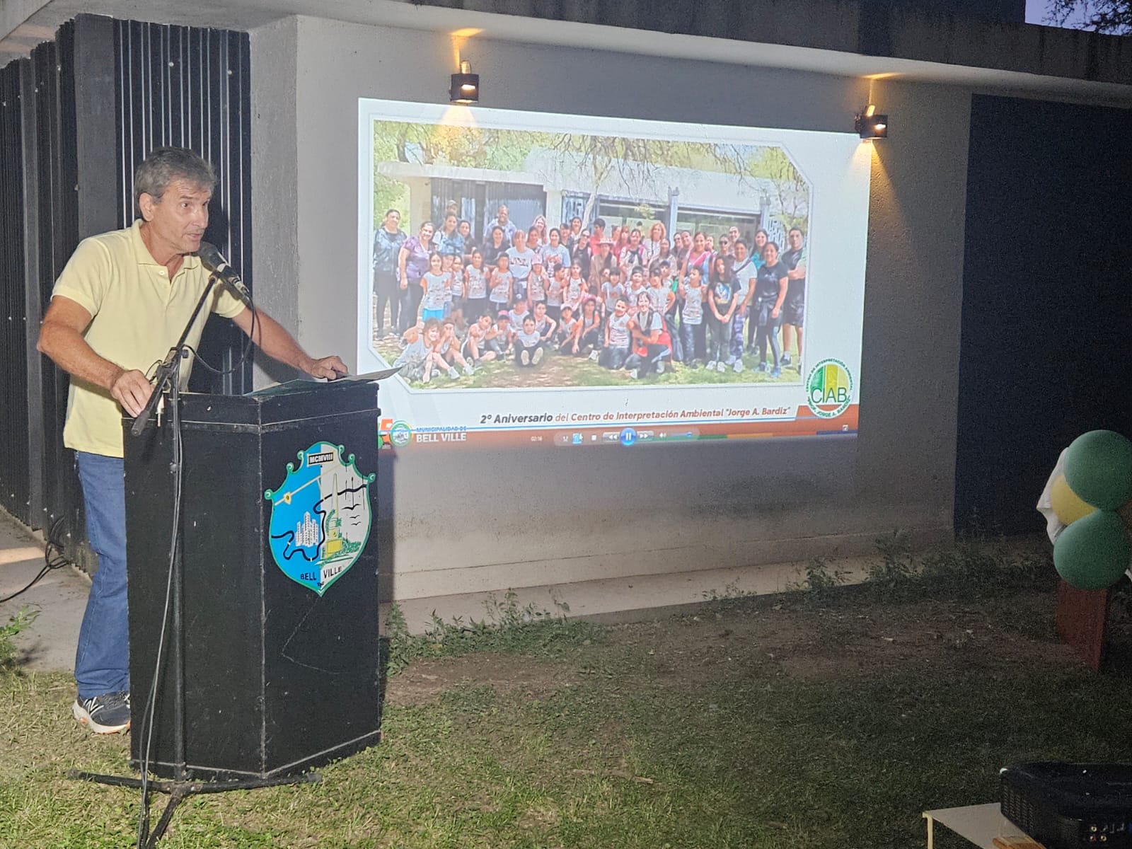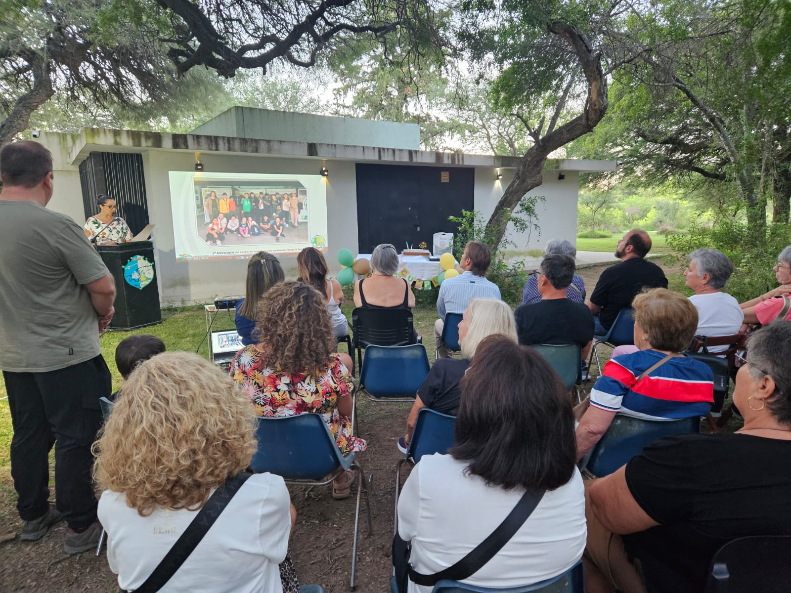 Mientras en una de las paredes del centro se proyectaban imágenes de los avances de obra del edificio y de las distintas actividades realizadas desde la inauguración del CIAB, se reunieron la viuda del profesor Bardiz, Estela Miserere, y otros miembros de su familia; el Intendente Juan Manuel Moroni; el secretario de Obras Servicios y Ambiente Ernesto Borrageros; la presidente del Concejo Deliberante Noelia Ferrari; Florencia Garrone, encargada de la reserva; Laura Serra, responsable del programa municipal Ecoacción, y miembros de las fundaciones que conforman la Comisión Ejecutiva de la Reserva (ProAvis, Grupo Raíces, Nuestro Río, Grupo Scout y Canotaje). También participaron del encuentro integrantes del Grupo Comunidad y Cambio (Villa María), que Bardiz integró, y funcionarios, empleados y colaboradores del municipio.