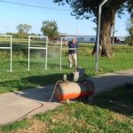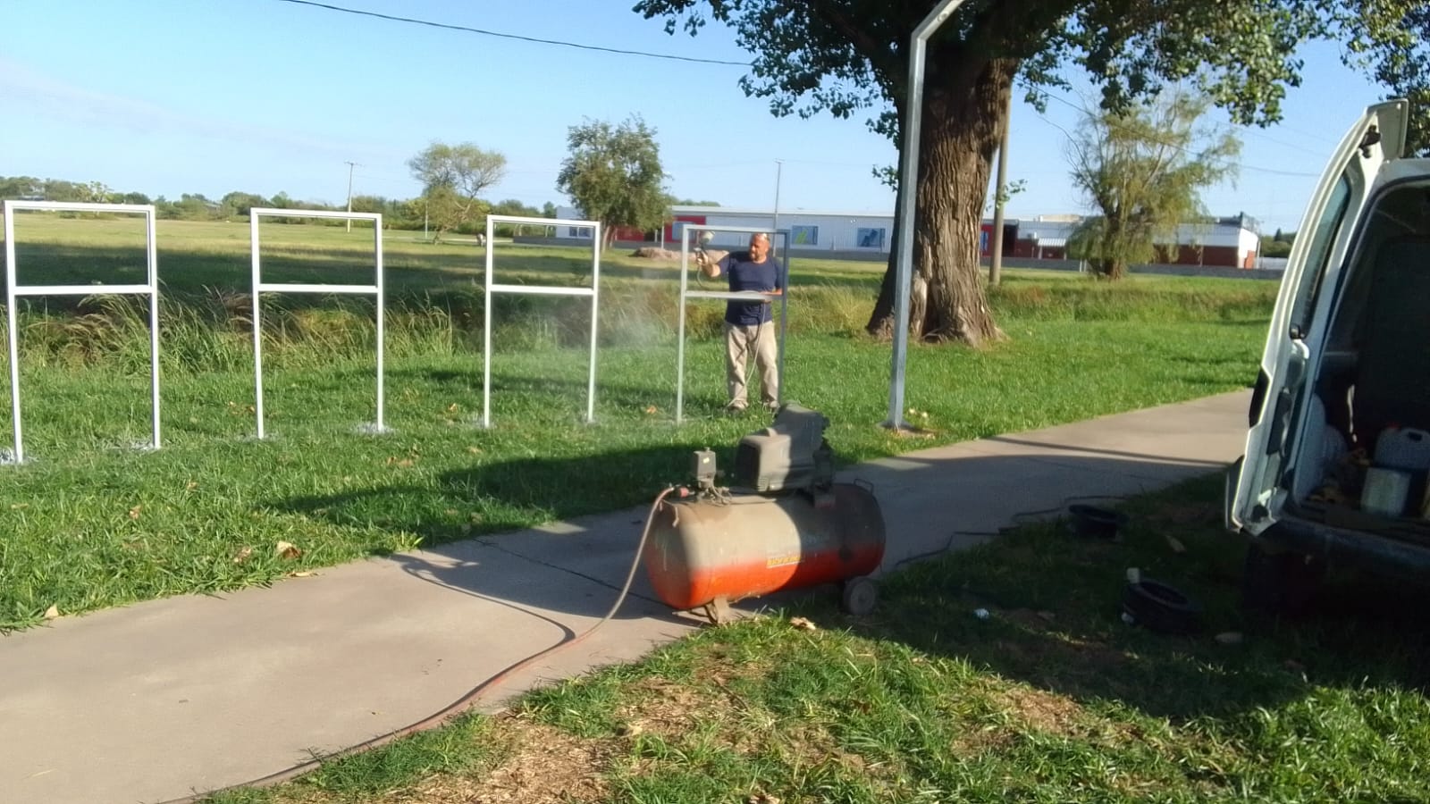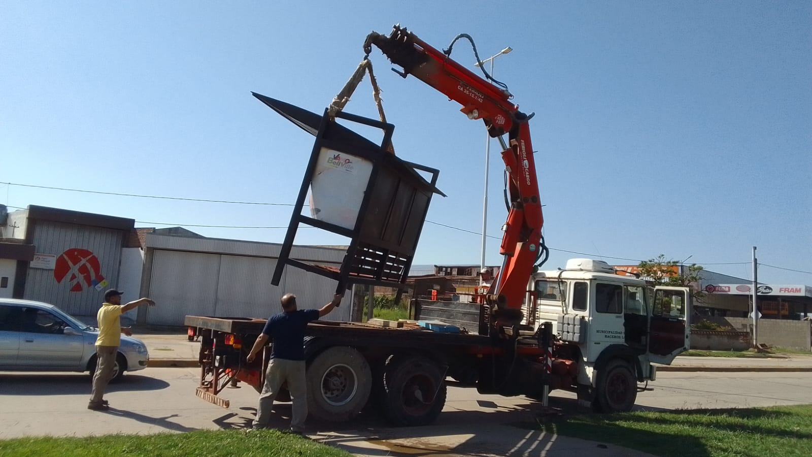 Personal municipal retiró la garita de colectivos ubicada en el acceso sur de la ciudad (Amadeo Sabattini), en el Paseo Malvinas, para pintarla, arreglarla y reubicarla en el mismo sector.