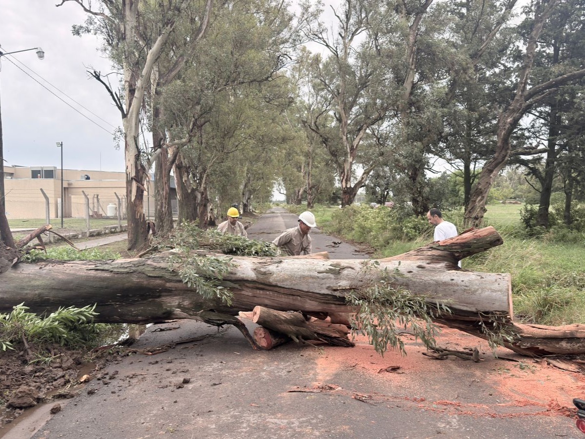 El lunes por la noche las ráfagas de viento en la ciudad alcanzaron los 125 km/h y ocasionaron caídas de árboles, postes y cables.