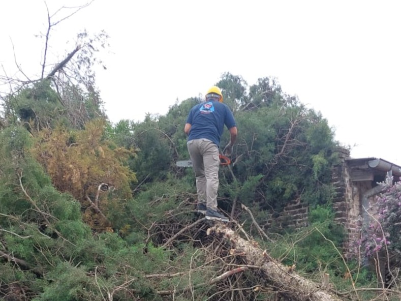 Con el correr de las horas, el área de Obras, Servicios y Ambiente del municipio se sumó y ocupó a casi todo su personal en los trabajos, que insumieron el uso de seis camiones, dos palas mecánicas y una chipeadora, entre otros rodados.