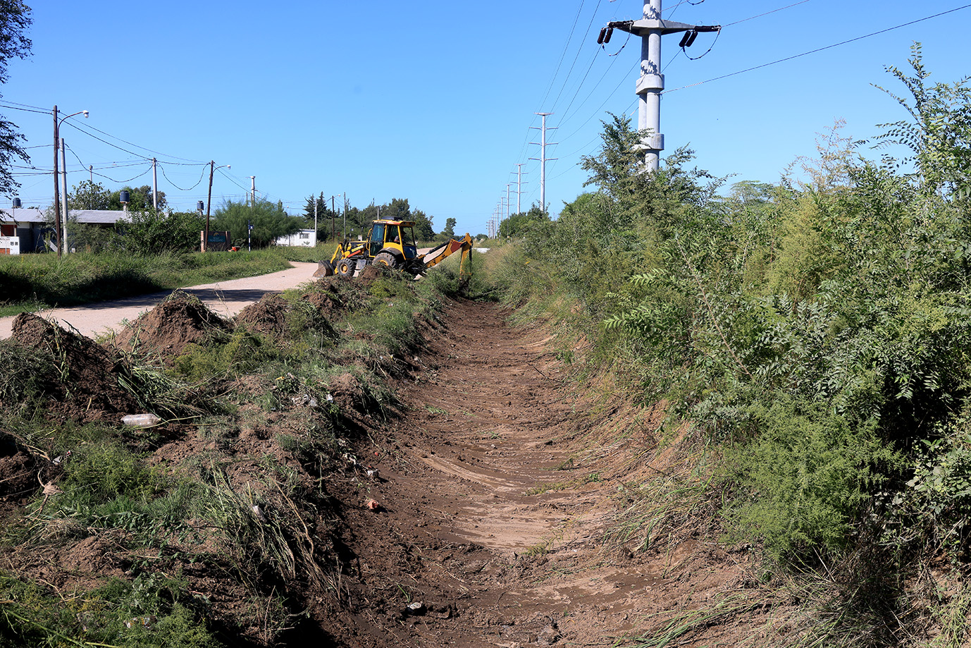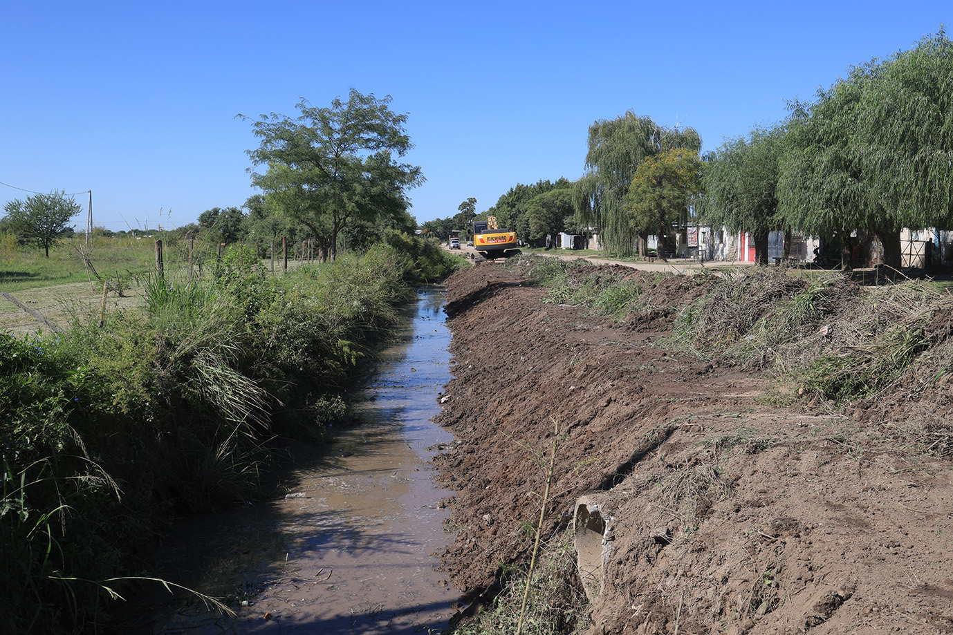 Con maquinaria y personal propios, el municipio sigue haciendo tareas de limpieza y mantenimiento de los canales de desagües de la ciudad.