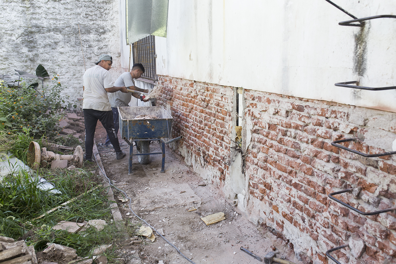 Actualmente se están demoliendo revoques con problemas de humedad, pisos y revestimientos de baño. Una vez que estén listas esas tareas se harán las nuevas instalaciones de agua y cloacas.