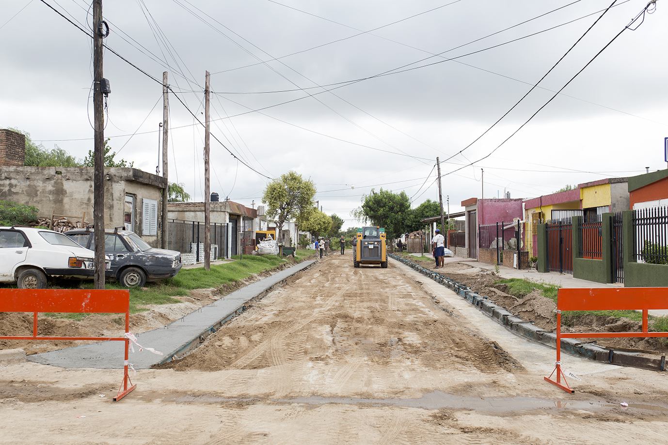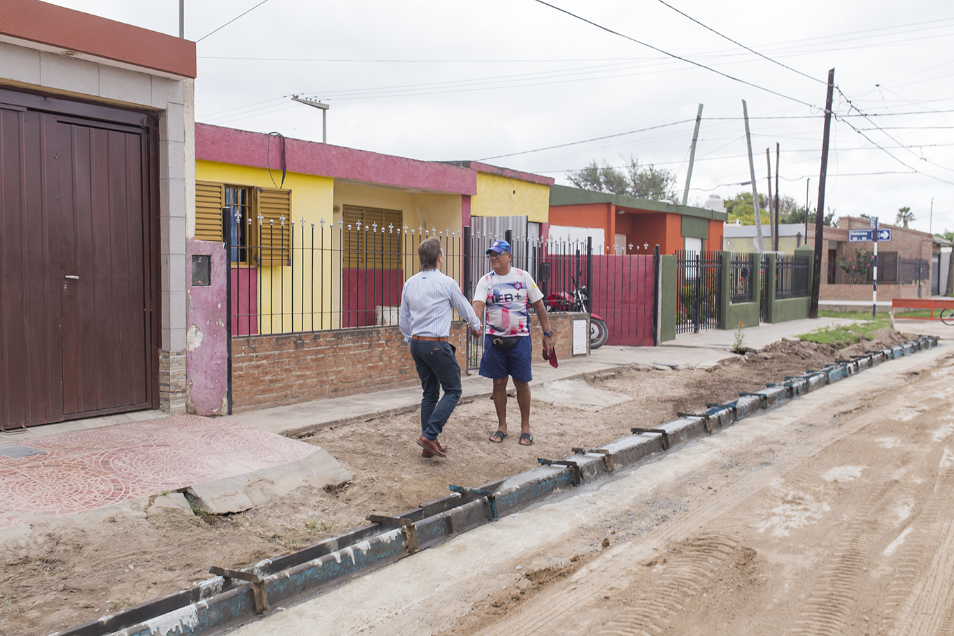 Junto a personal del área de Obras Públicas, el intendente Juan Manuel Moroni recorrió la obra de cordón cuneta en marcha en el Pasaje República del Salvador, entre Pichincha y Perito Moreno.